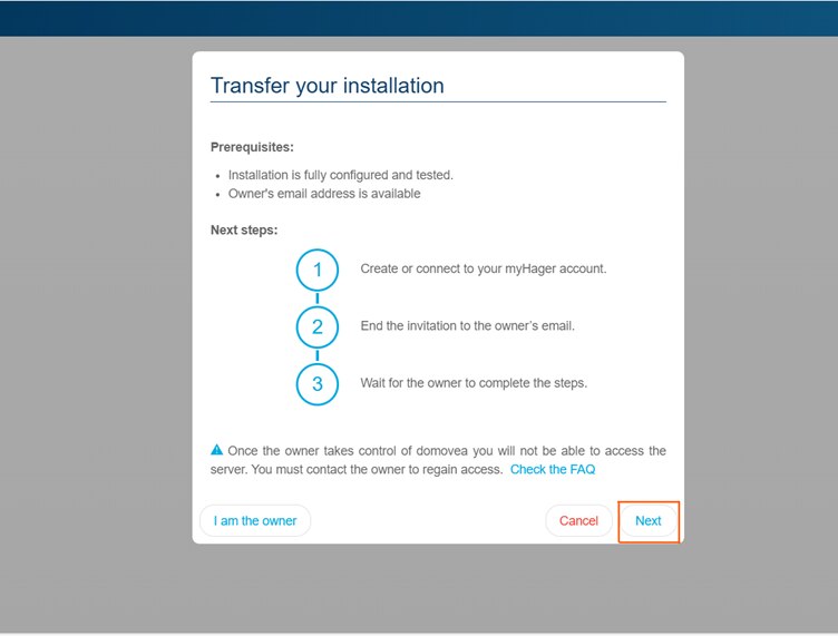 - Om installatie via de domovea-app te openen als beperkte gebruiker heb je geen myHager-account nodig