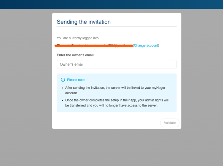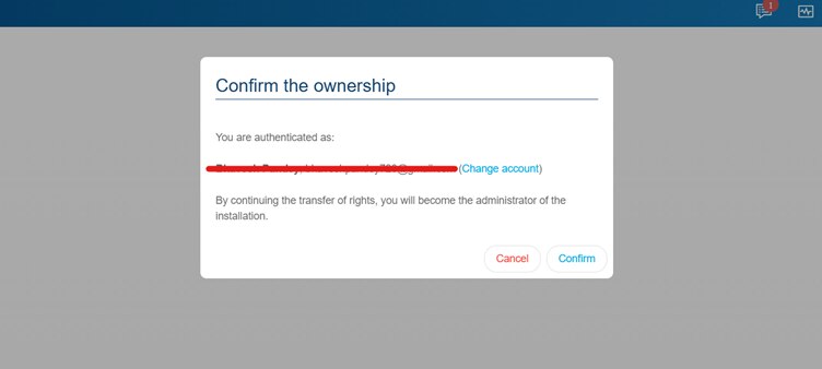 De overdracht wordt voltooid wanneer de eigenaar de uitnodiging accepteert en inlogt bij de installatie.