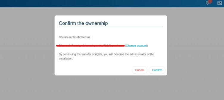 Передача завершується після того, як власник приймає запрошення та входить у інсталяцію.