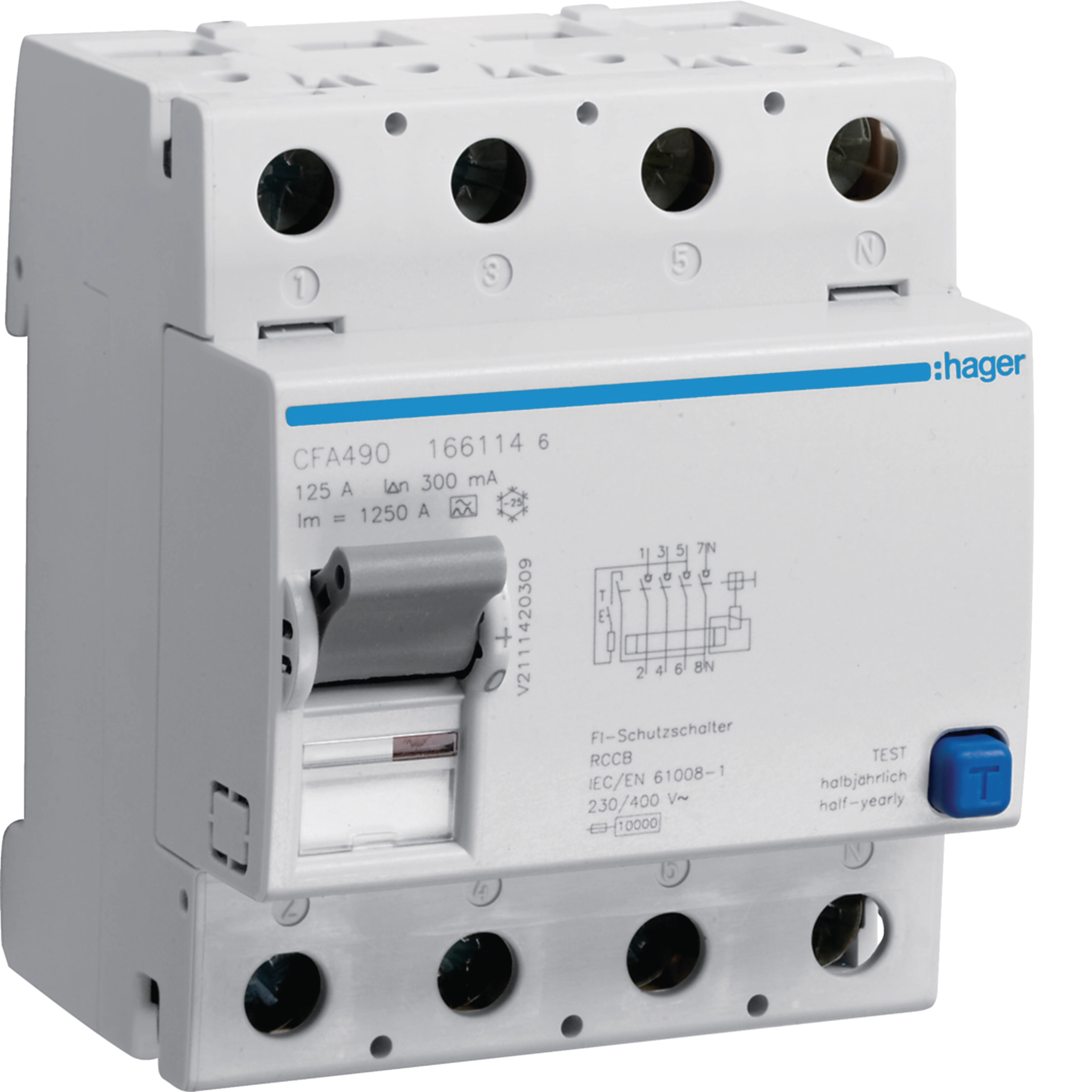 Fehlerstromschutzschalter 4 polig 10kA 125A 300mA Typ A CFA490