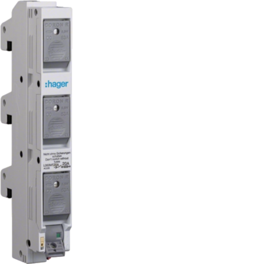 Lasttrennschalter mit Sicherungen D02 20A 3polig mit Sicherungsdummys 60mm L063M120A