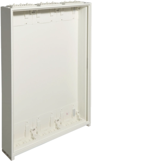 Einbaufeld für Installationskleinverteiler Aufputz nach DIN EN 61439-1/-3 (VDE 0660-600-1/-3), nach Maßnorm DIN 43 871, zum Einbau von Geräten bis 125 A, Tragschienen aus profiliertem und verzinktem Stahlblech, Gerätetragschienen aus verzinktem Stahlblech, mit Berührungsschutzabdeckung.