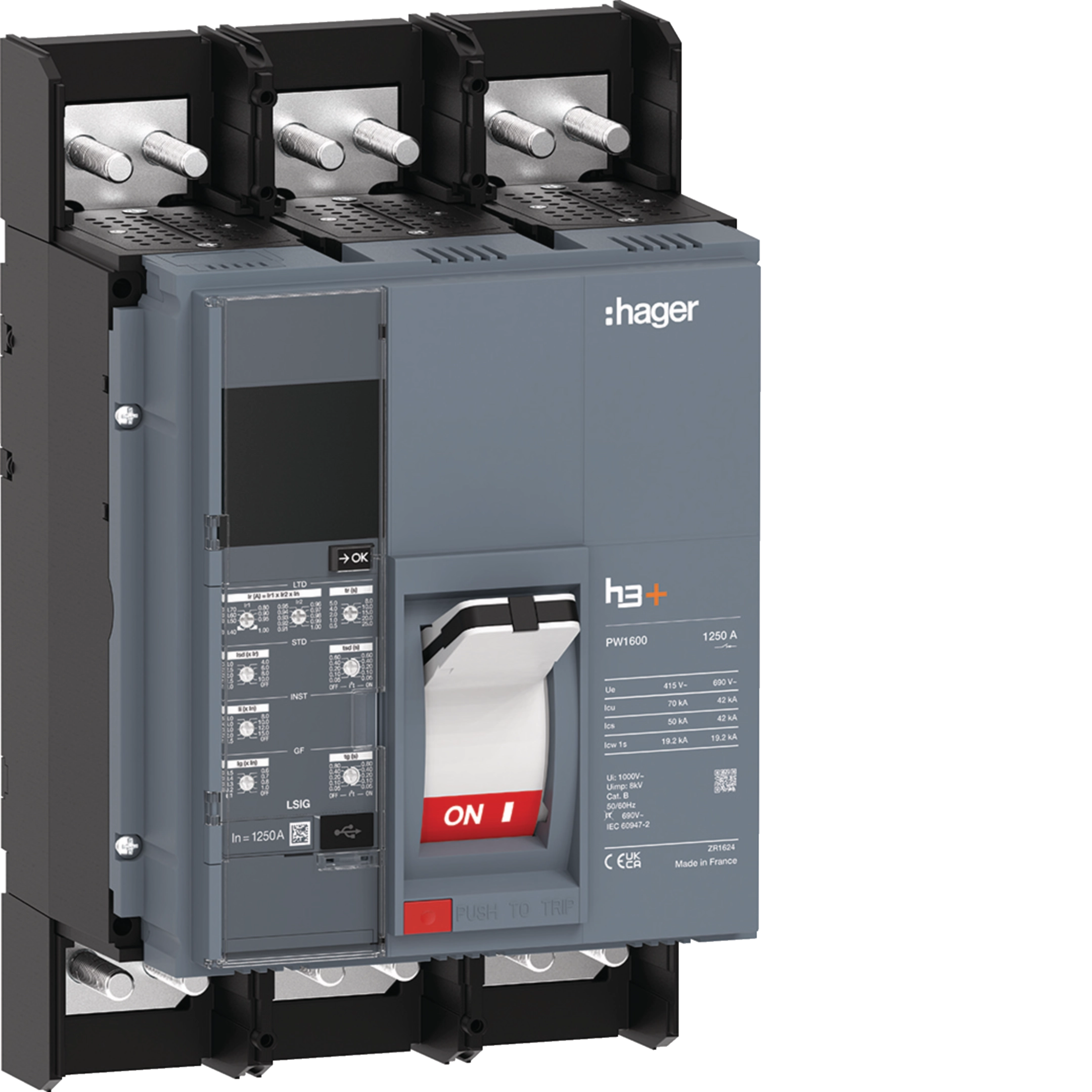 Moulded Case Circuit Breaker h3+ PW1600 LSIG 3P3D 1250A 70kA FTC