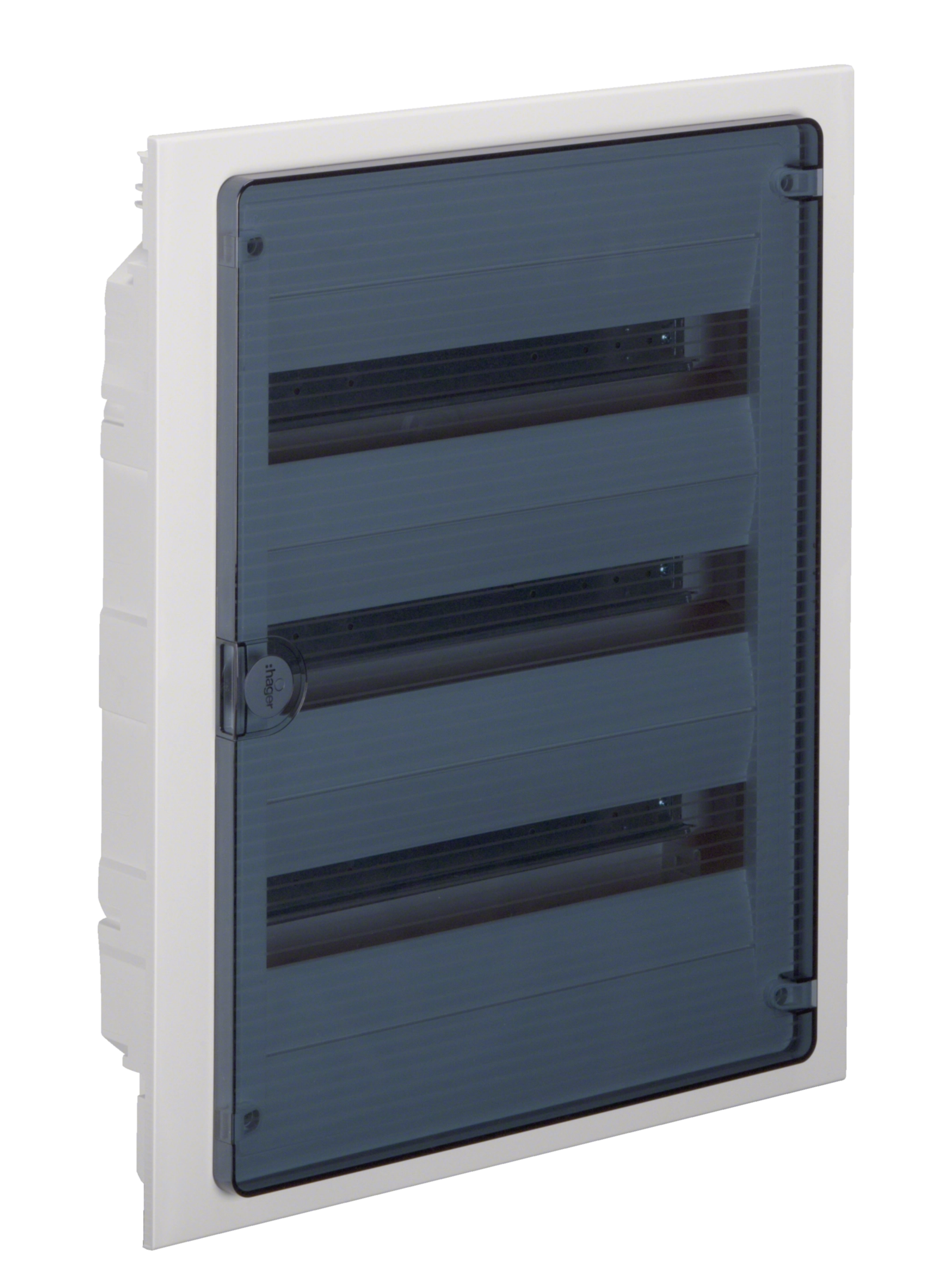 Rozvodnice zapuštěná golf, IP40, 3-řadá, 54 mod., transp. dvířka, bezšr. svorky