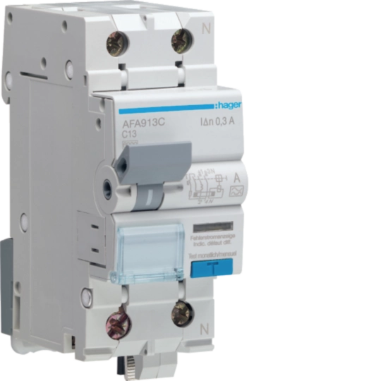 FI/LS-Schalter Hager RCBO 2P 230V Charakteristik C 13A 0.3A Typ A 2TE AFA913C