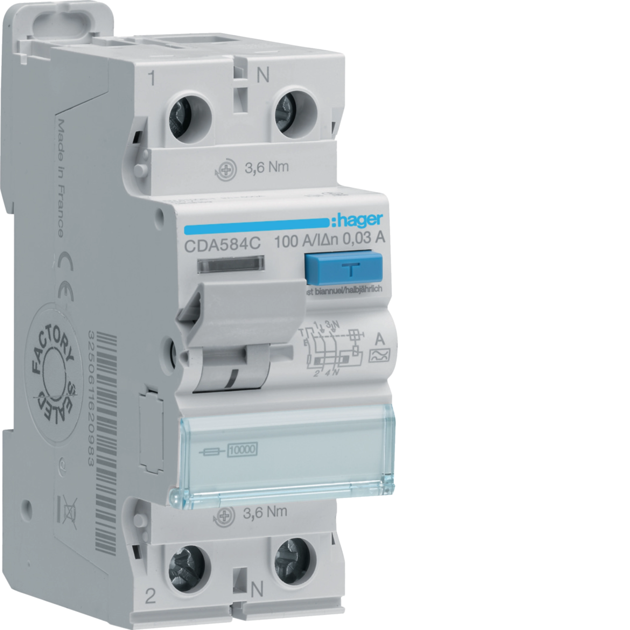 Fehlerstrom-Schutzschalter Hager RCCB (RCD) 2P 230V 0.03A Typ A 100A 10kA 2TE CDA584C