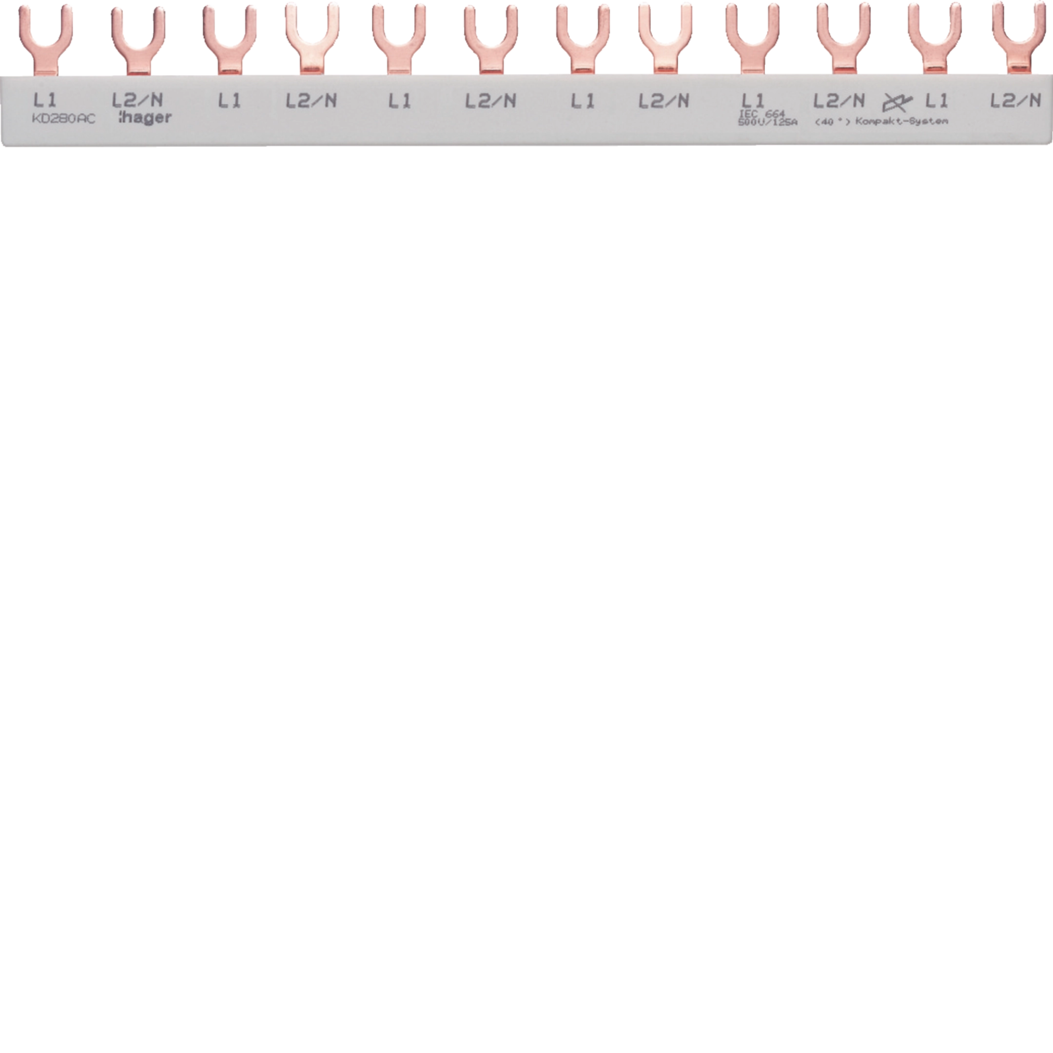 Phasenschiene Hager 2P 2L Gabel 10mm² 63A 210×12mm weiss KD280AC