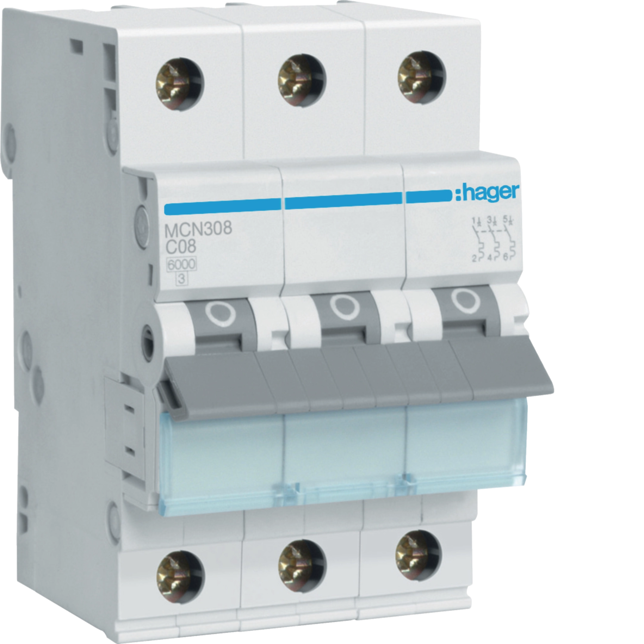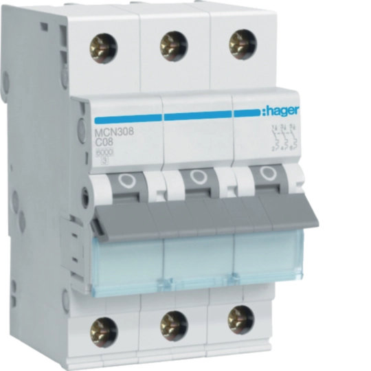 Leitungsschutzschalter Hager MCB 3P 400V Typ C 8A Icn 6kA 3TE MCN308