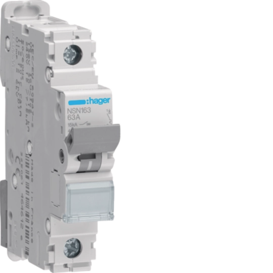 Leitungsschutzschalter Hager MCB 1P 415V Typ D 63A 1TE NSN163