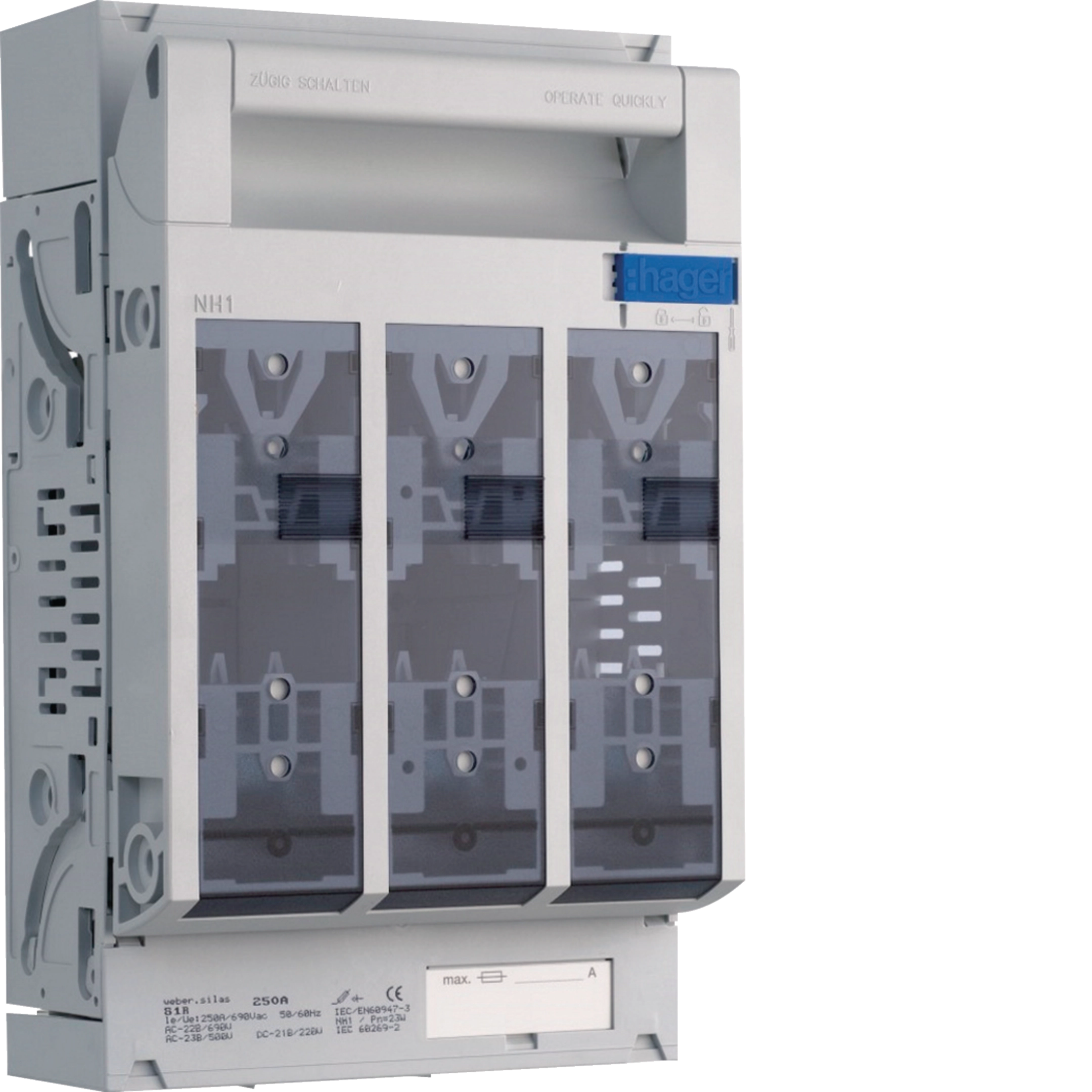 Sicherungslasttrennschalter SILAS Gr.DIN1 250A mit Rahmenklemme rm,sm,se 150 mm² S1R