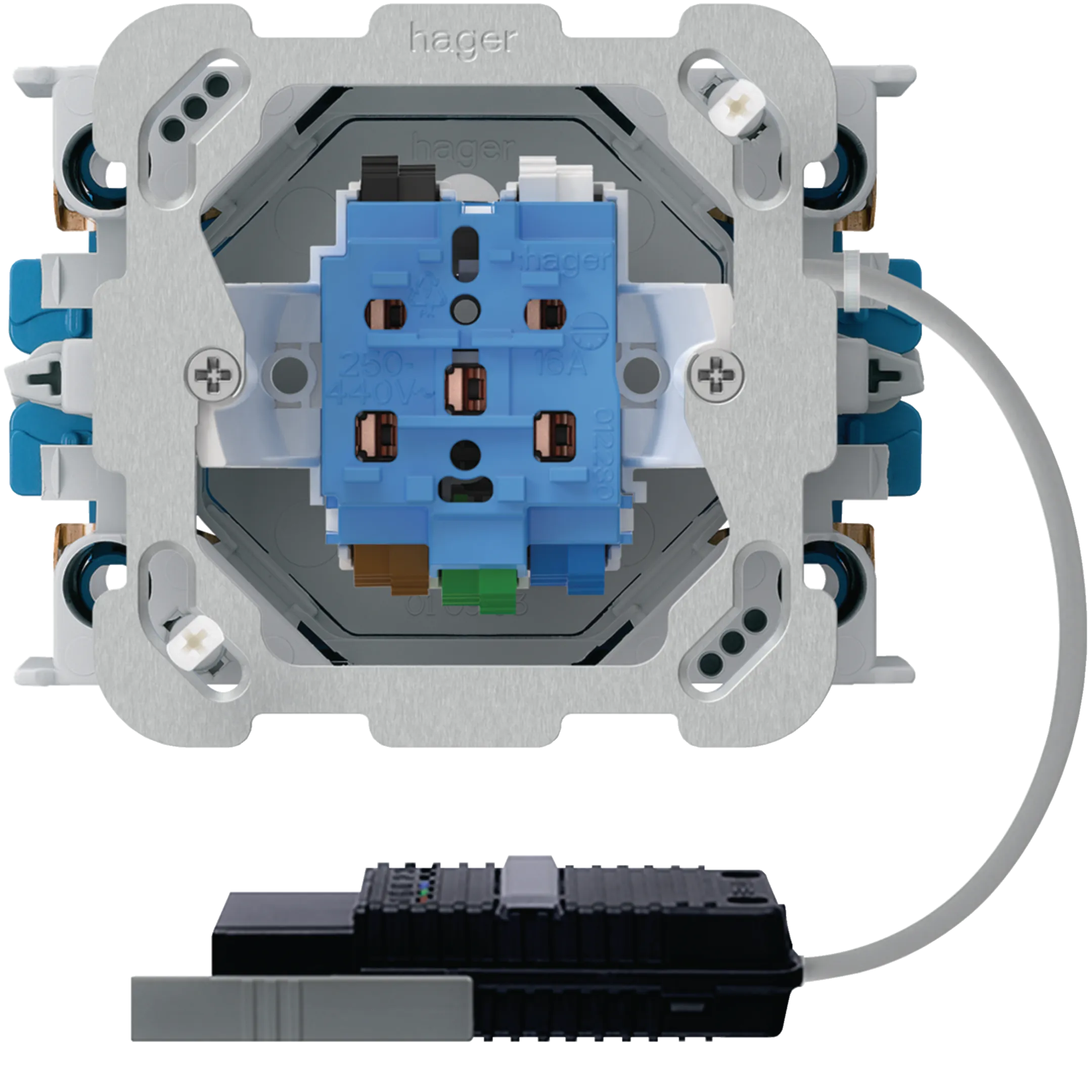 EB-Steckdose 1×T15/25 Hager Rundkabel mit EB-Dose G3 WH228927TG
