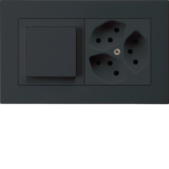 kallysto.pro UP Gr.1x2 komplett: Druckschalter S3 / Steckdose 3x Typ 13 Schwarz