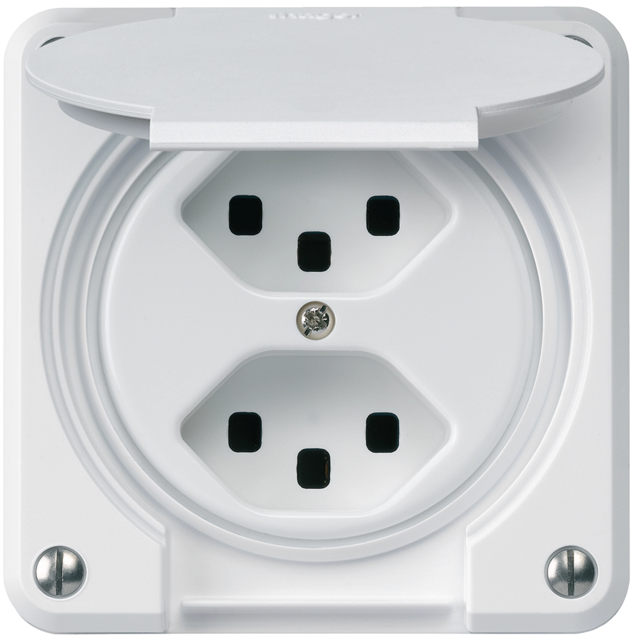 robusto Einsatz: 2x Typ 23 mit IP21-Klappdeckel für UP-Kombination Signalweiss