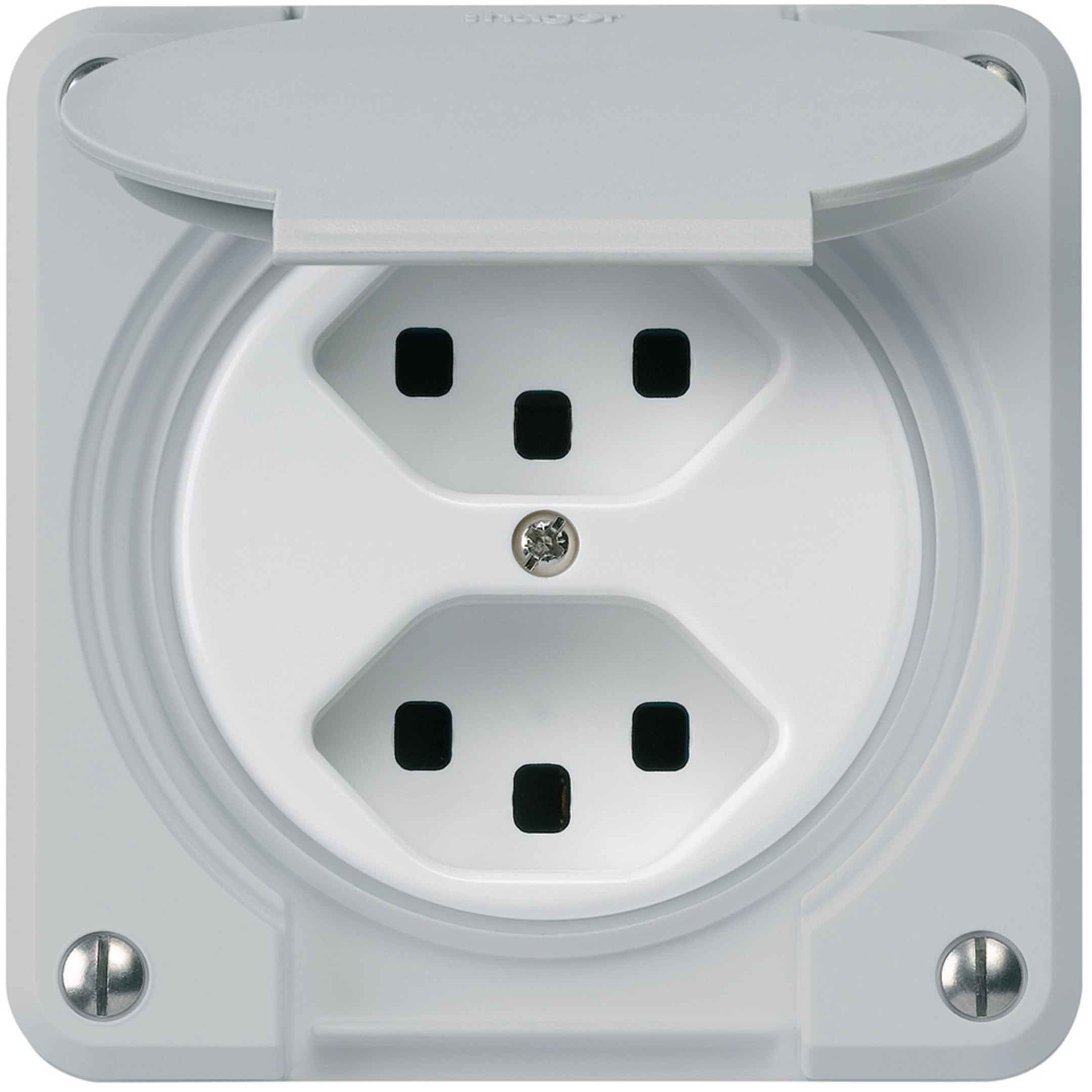 robusto Einsatz: 2x Typ 23 mit IP21-Klappdeckel für UP-Kombination Grau