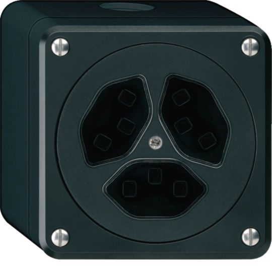 AP-Steckdose Hager robusto, 3×T23, Q, schwarz WH36647305Q