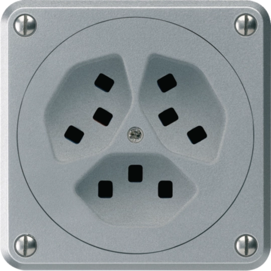 robusto UP Gr.1 komplett: Feucht-Steckdose 3x Typ 23 mit Steckkl. IP21 Aluminium