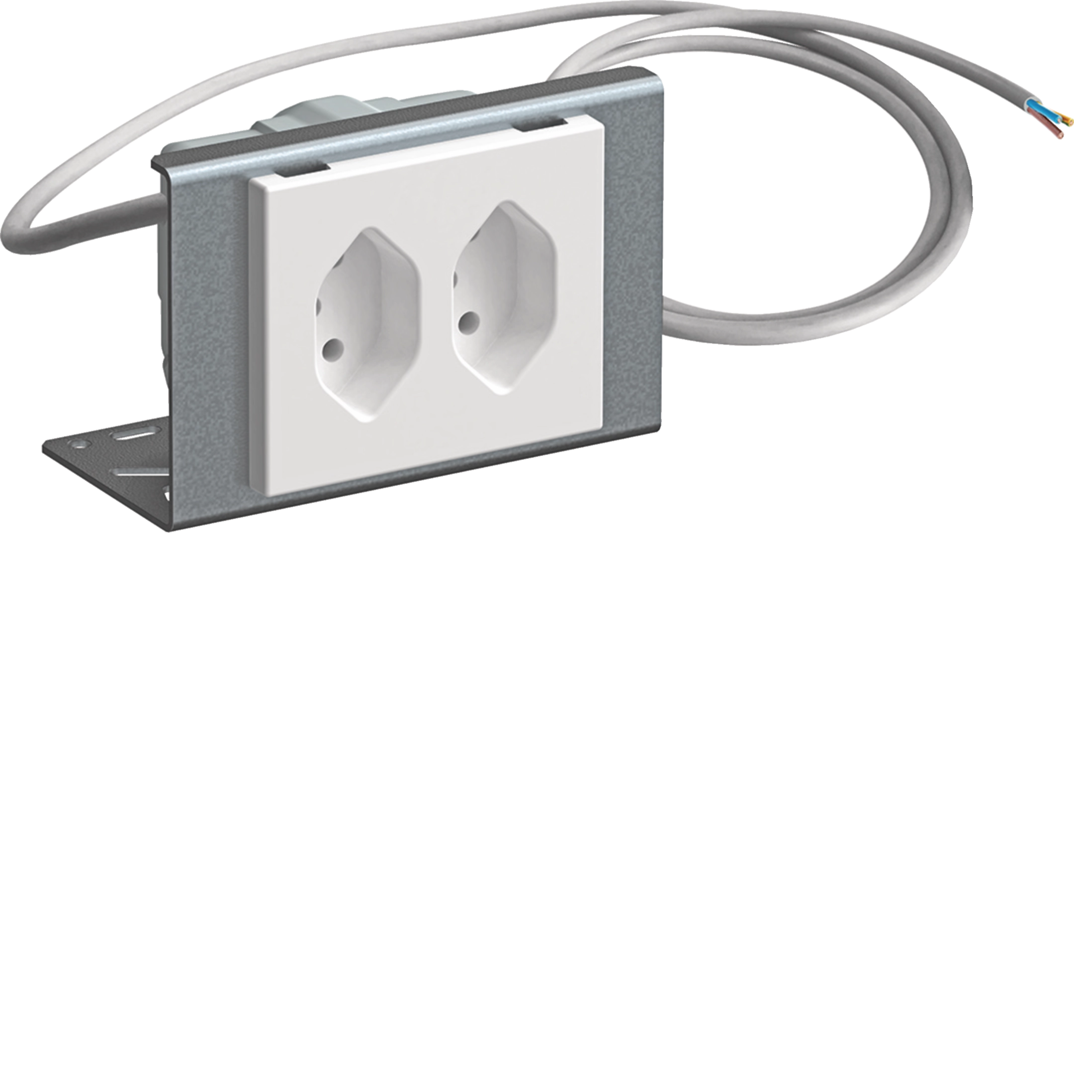 FLF-Steckdose 2×Typ 13 auf Winkel montiert mit 1.5m Kabel & Schutzkappe weiss WH37629100D