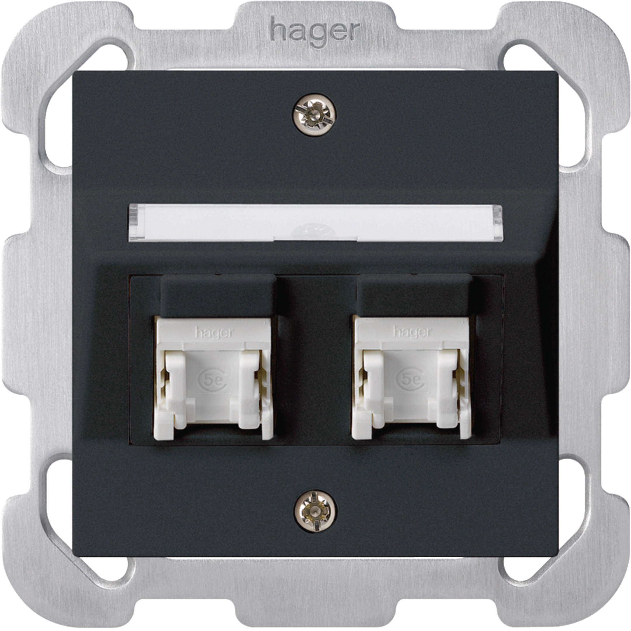 kallysto UP: 2x Steckdose RJ45 Cat.5e UTP mit Befestigungsplatte + Front Schwarz