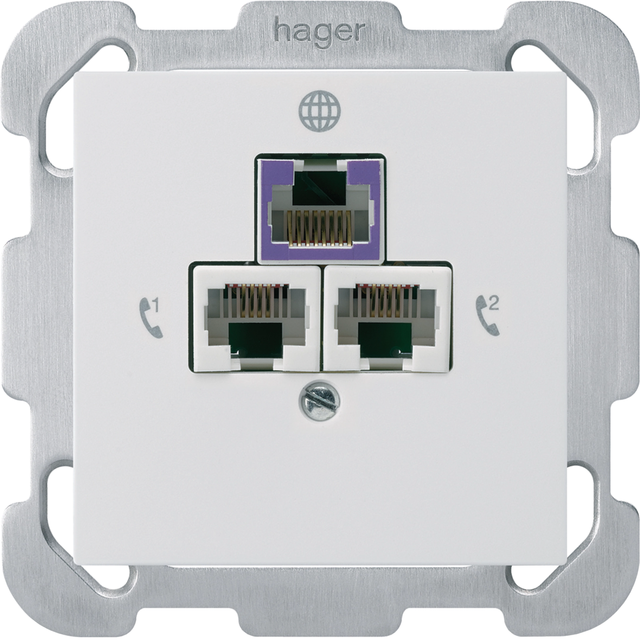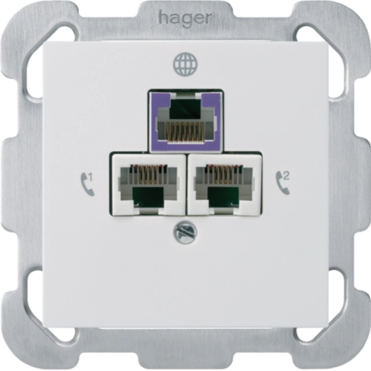 kallysto UP: Rückführdose für 1x DSL 2x RJ45 8(4)p + Befest.-Pl. + Front Weiss