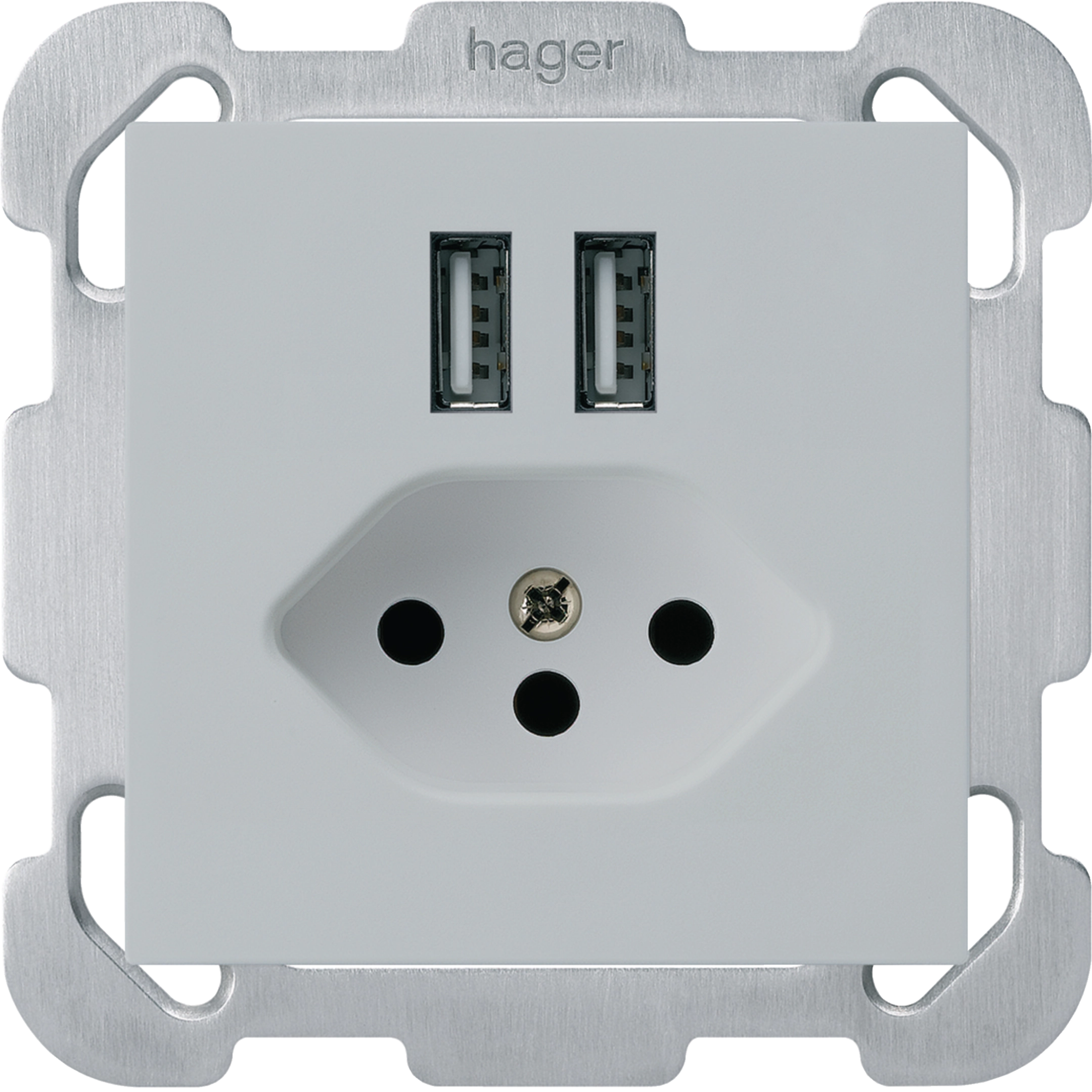 kallysto UP: 2x USB-A Smart IC 12W + 1x T13 + Befestig.-Platte + Front Grau