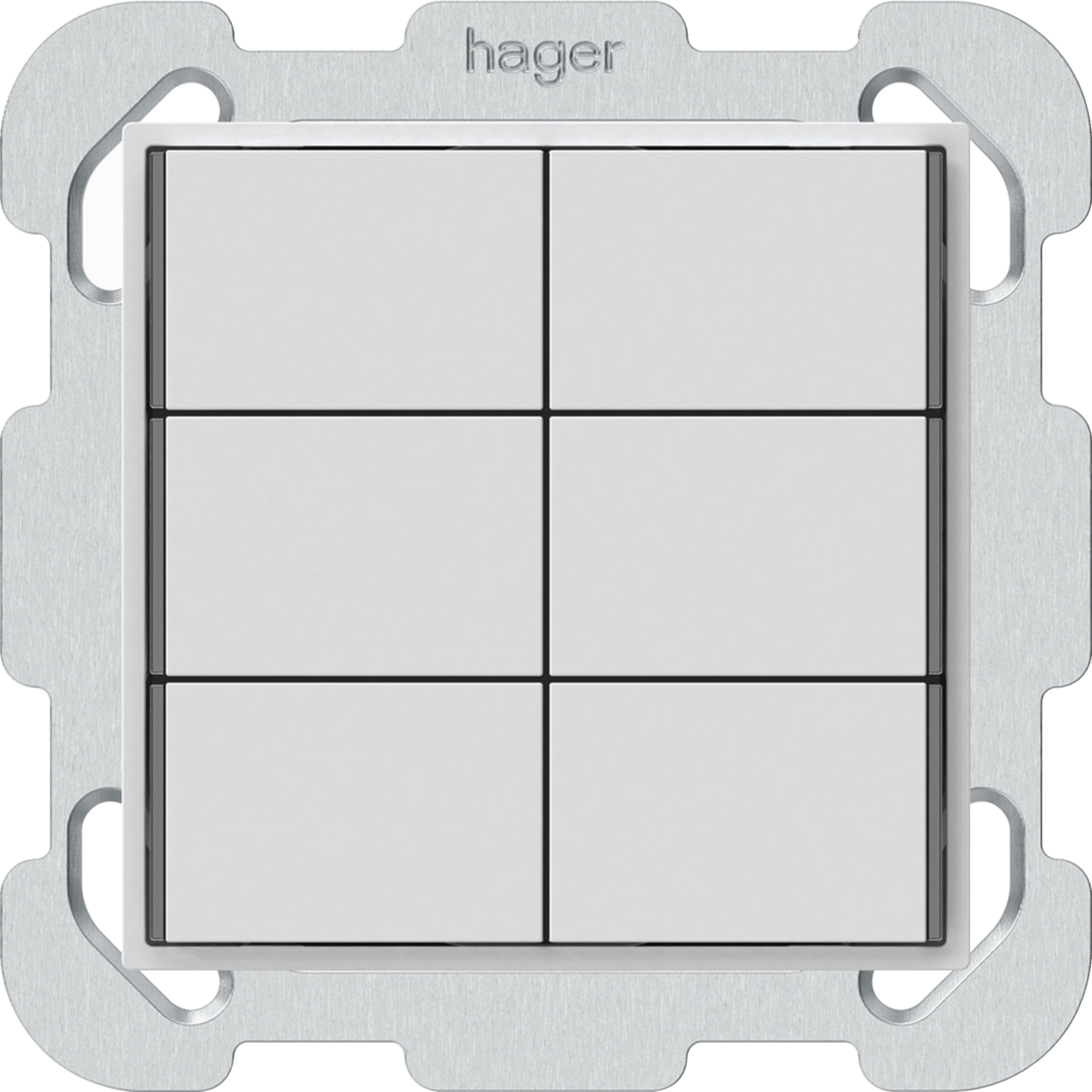 kallysto mit Front + Knöpfe: 6-fach KNX Taster Secure mit Befest.-Platte, Weiss