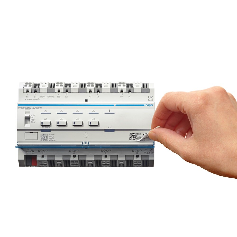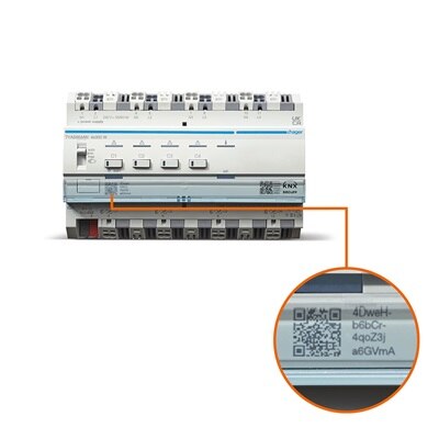 Jedes Gerät verfügt über einen Code, den sogenannten Factory Default Setup Key (FDSK), zur Inbetriebnahme von KNX Secure. Dieser FDSK befindet sich in Form eines QR-Codes und einer alphanumerischen Kombination als Aufkleber am Gerät, der nach der Aktivierung abgezogen und archiviert wird. Die Eingabe des FDSK in ETS erfolgt entweder durch Scannen des QR-Codes oder per manueller Eingabe der Buchstaben-Zahlen-Kombination. Selbstverständlich können Sie die Anlage auch ohne die Aktivierung von KNX Secure betreiben.