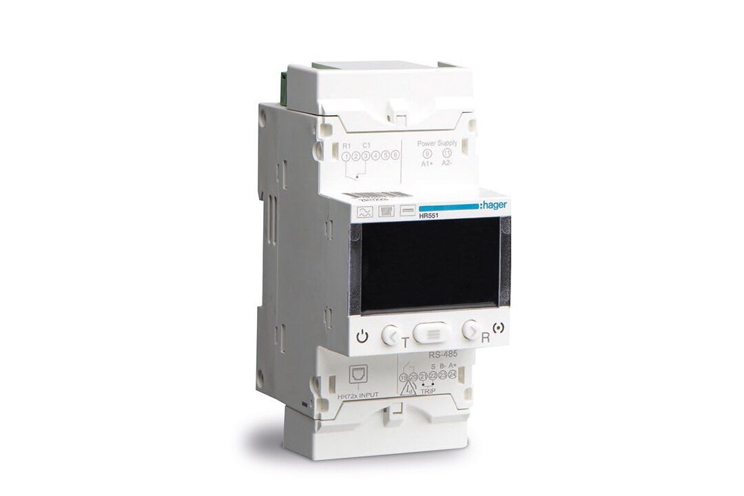 Das Relais verfügt über integrierte RS-485-Kommunikation (Modbus), Voralarm-Relais, Ereignisprotokoll und Fernsteuerungseingänge. Das ermöglicht eine umfassende Kontrolle. Voll programmierbar, zeigt das kontrastreiche Display den Differenzialstrom in Echtzeit an und wechselt zu Rot, wenn das Relais auslöst. Zusammen mit den ebenfalls neu eingeführten Summenstromwandlern HR7x erkennt das HR551 neben Wechselstrom-Fehlerströmen und pulsierenden Gleichstrom-Fehlerströmen auch glatte Gleichstrom-Fehlerströme des Typs B nach IEC 60755.