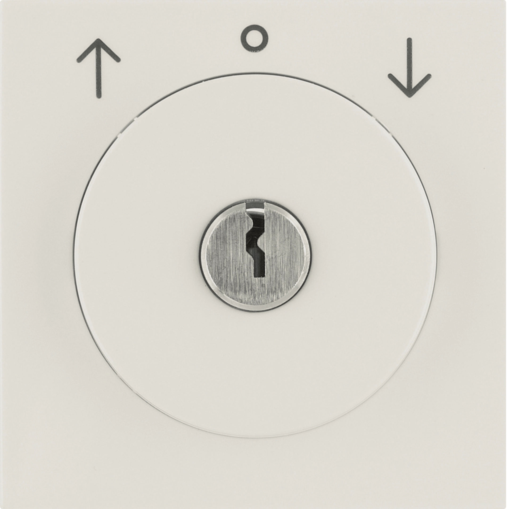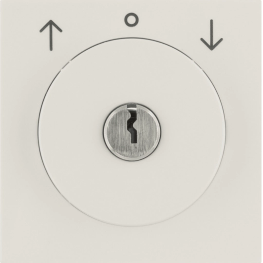 Zentralstück mit Schloss für Jalousie-Schlüsselschalter, mit Aufdruck und Tastrastfunktion, mit 2 Schlüsseln, Schlüssel in Mittelstellung abziehbar, mit Tastrastfunktion, Ersatzschlüssel und andere Schließungen auf Anfrage. Unterputz-Installation, Standardprogramm. Material: Kunststoff, Duroplast, halogenfrei.