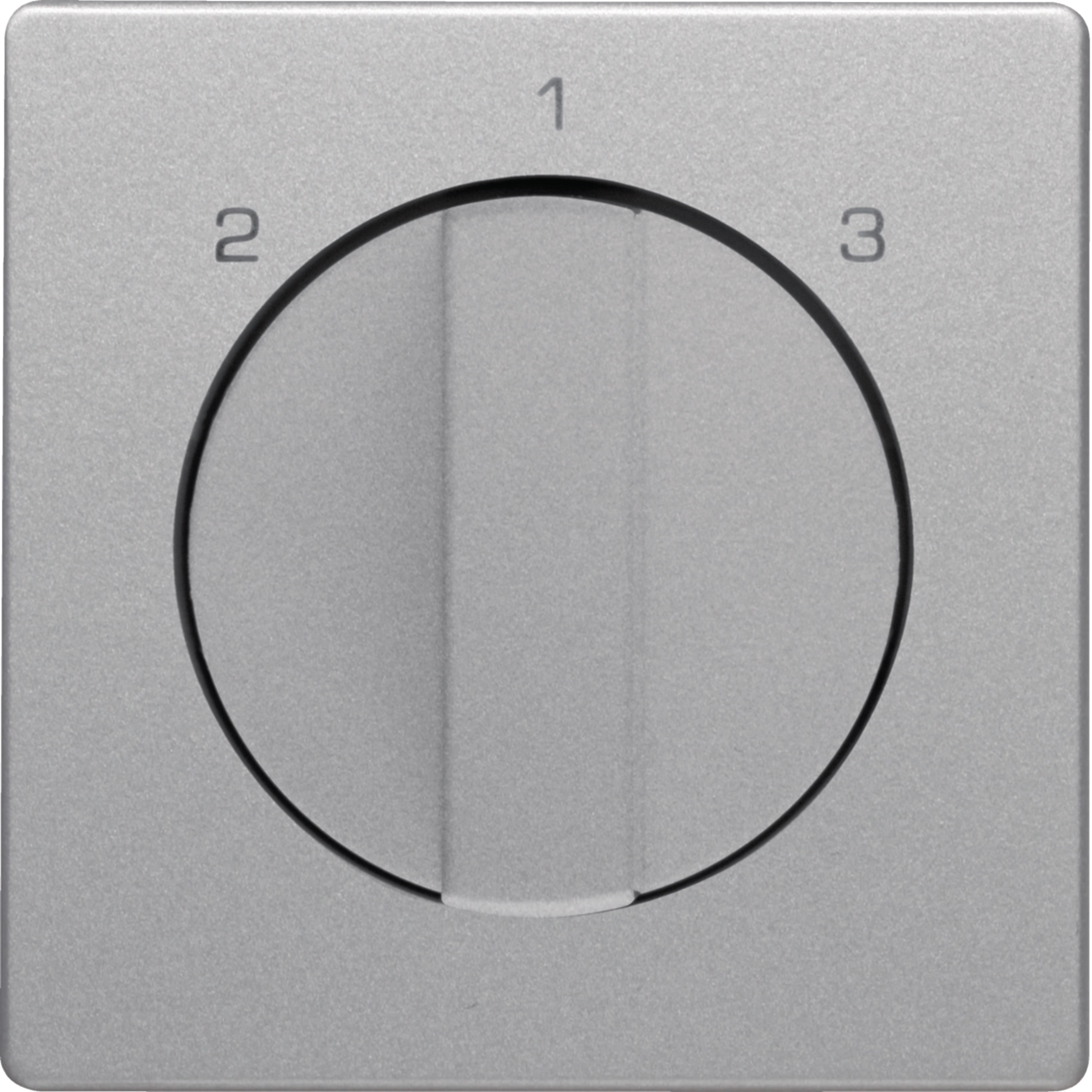Zentralstück mit Drehknopf für 3-Stufenschalter, ohne Nullstellung, mit Aufdruck - 2-1-3 -. Unterputz-Installation, Flächenprogramm. Material: Kunststoff, halogenfrei.