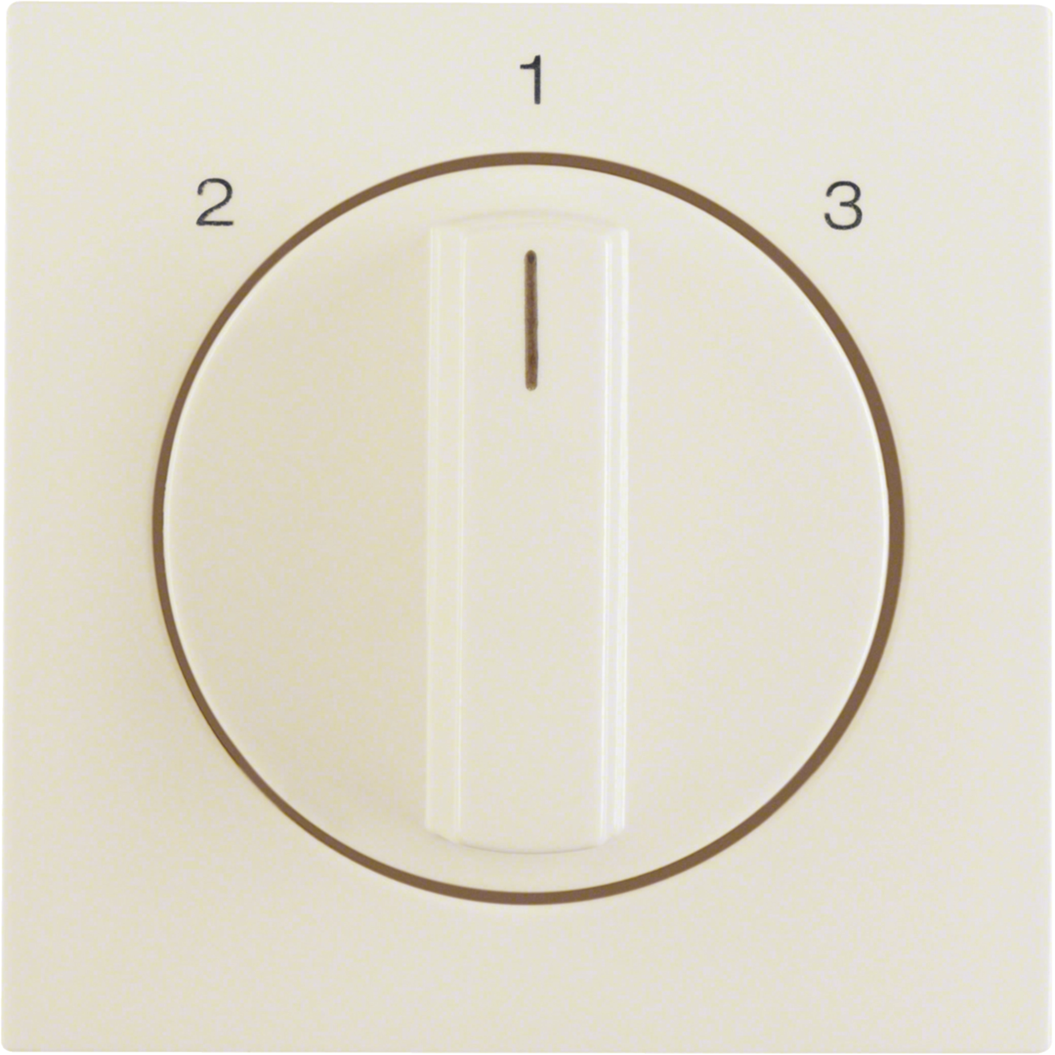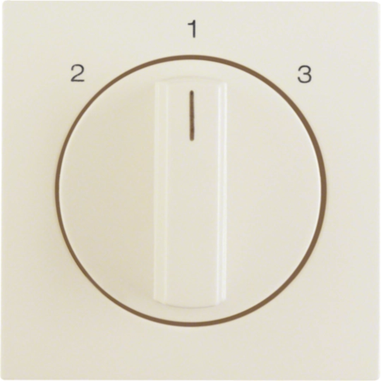 Zentralstück mit Drehknopf für 3-Stufenschalter ohne Nullstellung, mit Aufdruck - 2-1-3 -. Unterputz-Installation, Standardprogramm. Material: Kunststoff, Duroplast, halogenfrei.