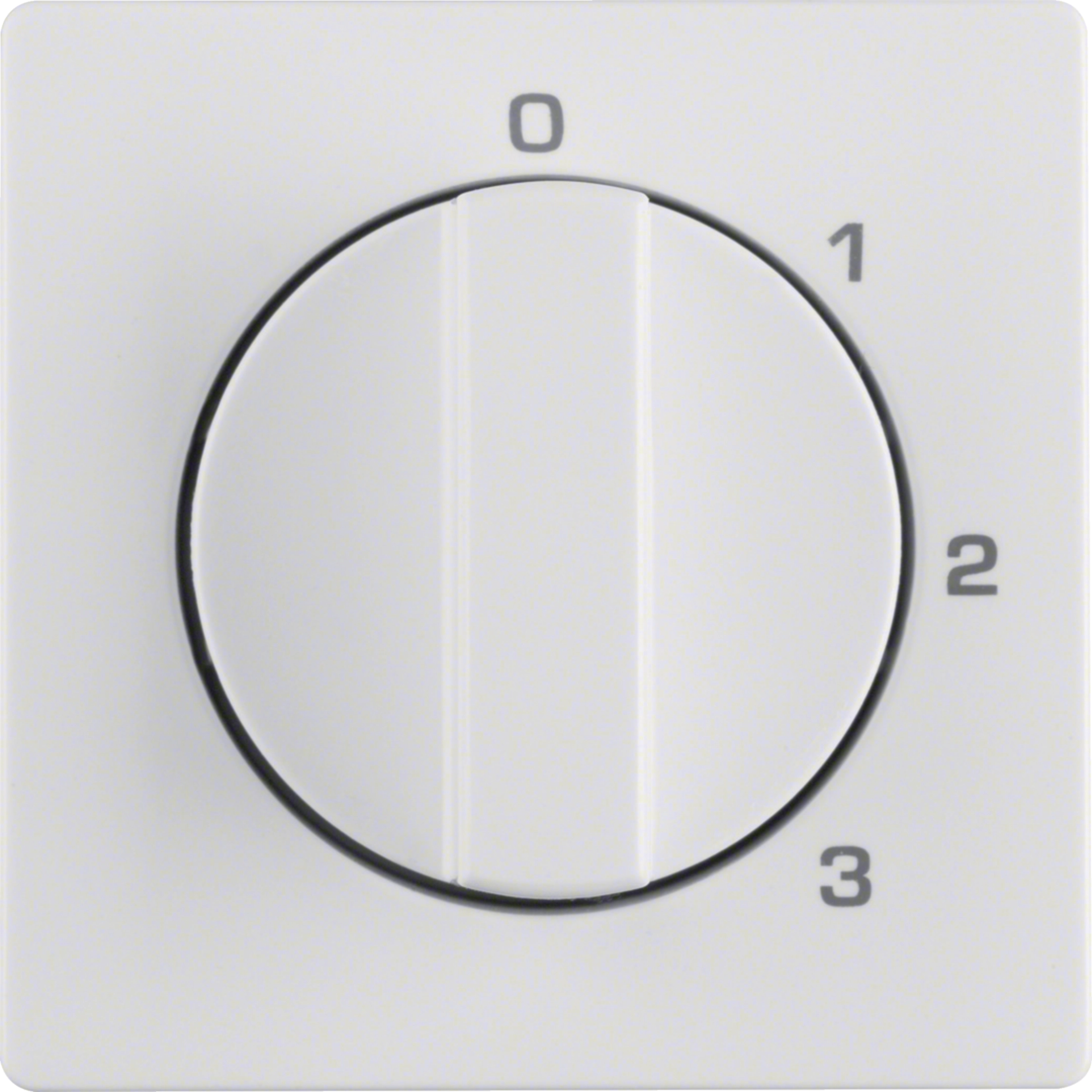 Zentralstück mit Drehknopf für 3-Stufenschalter, mit Nullstellung, mit Aufdruck - 0-1-2-3 -. Unterputz-Installation, Flächenprogramm. Material: Kunststoff, halogenfrei.