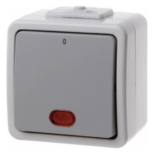 Kontroll-Außschalter 2-polig mit roter Linse Aquatec IP44 lichtgrau/grau 317205