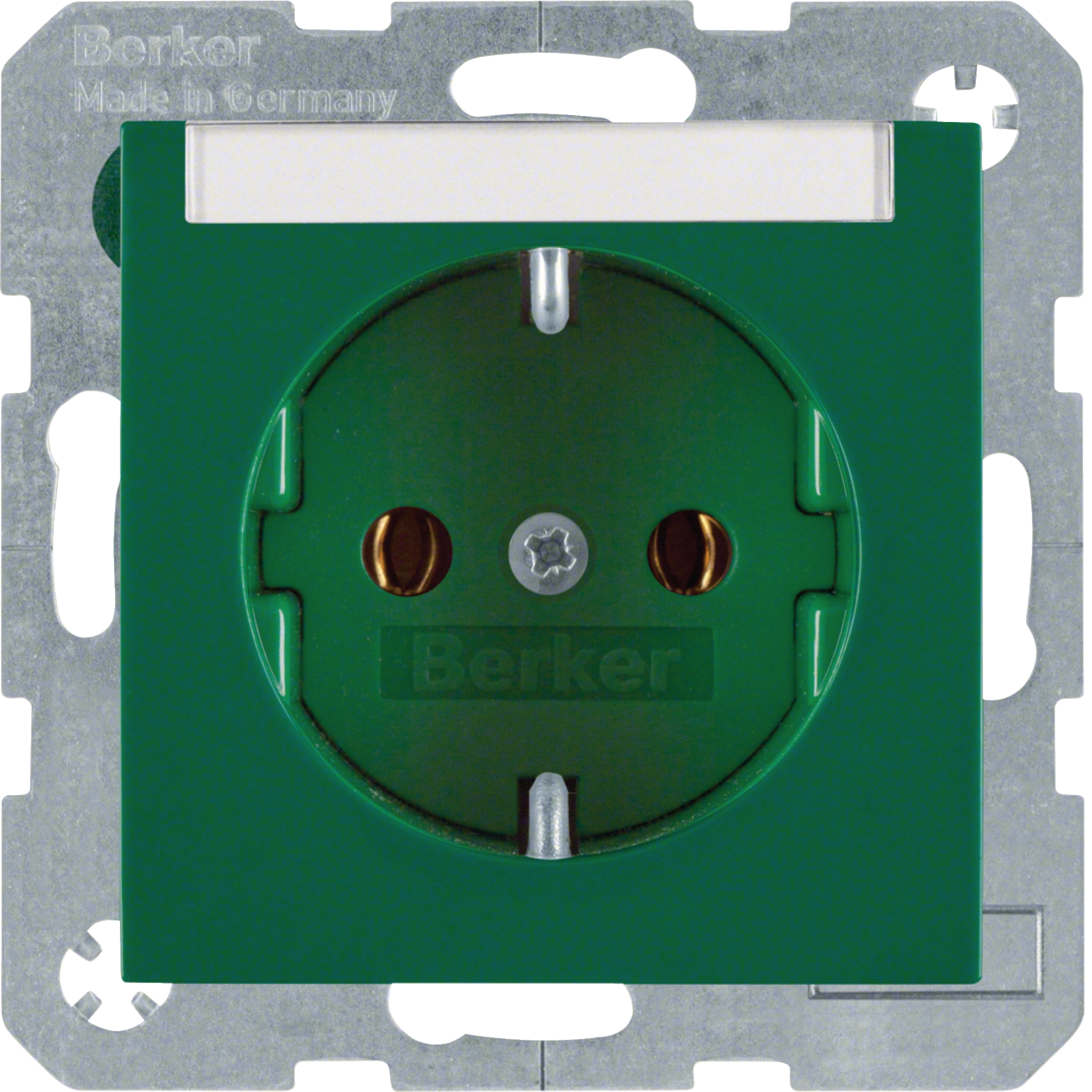 Steckdose SCHUKO mit Beschriftungsfeld S.1/B.3/B.7 grün, glänzend