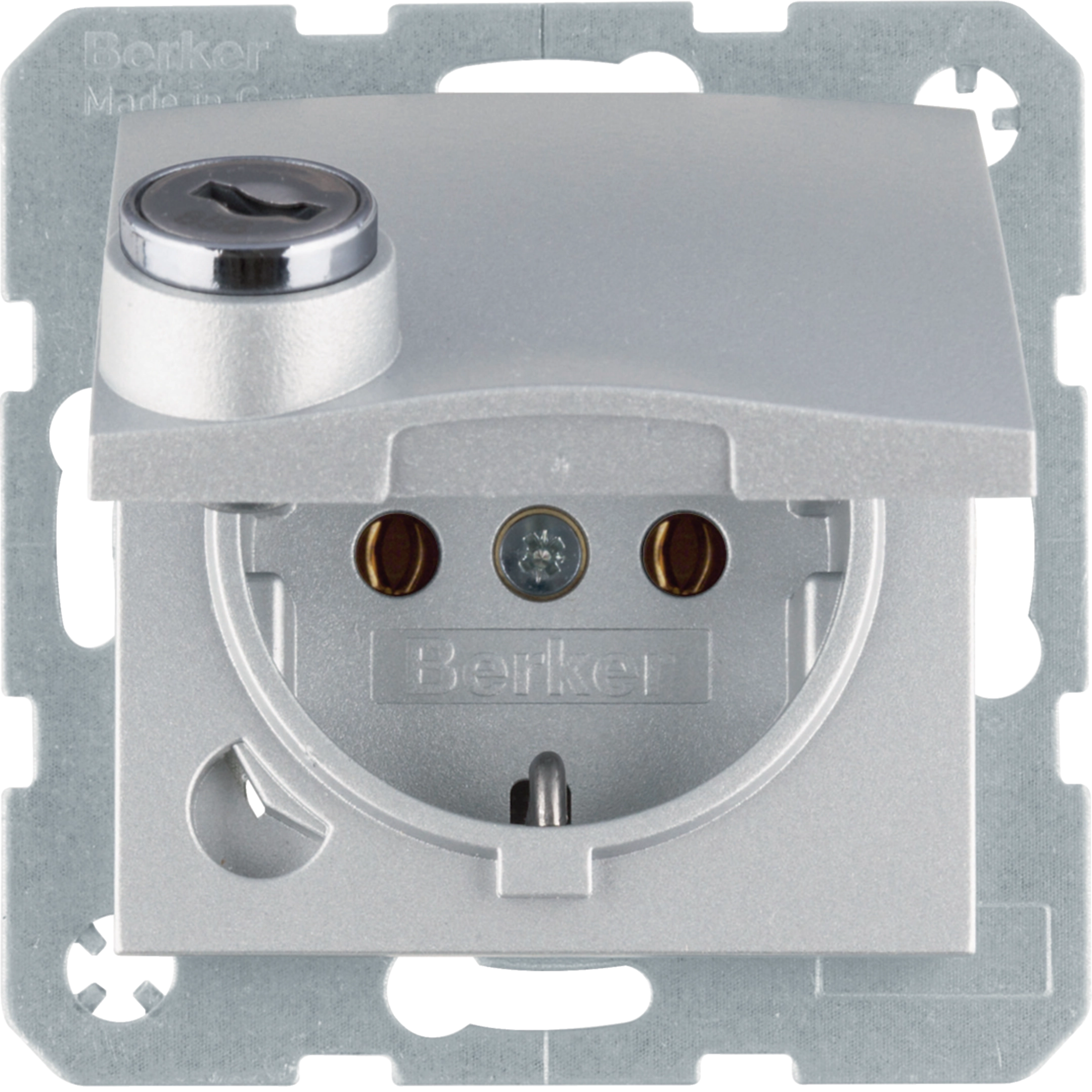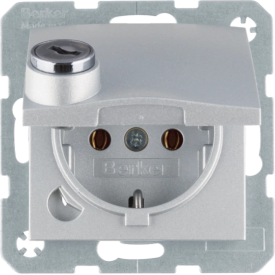 SCHUKO Steckdose m. Steckklemme,Klappd.,Schloss, S.1,alu matt,lackiert 47631404