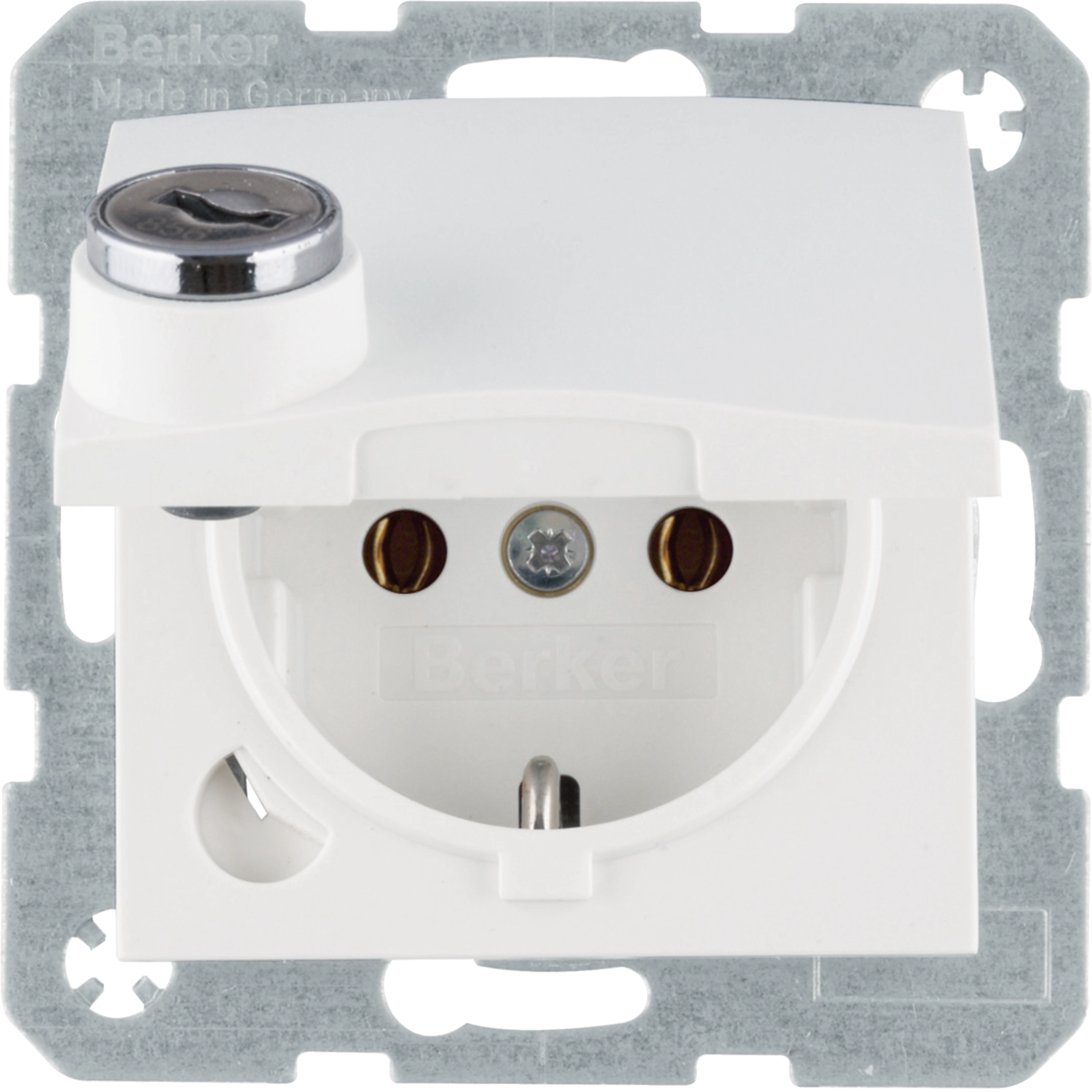 SCHUKO Steckdose m. Steckklemme,Klappd.,Schloss, S.1,polarweiß matt