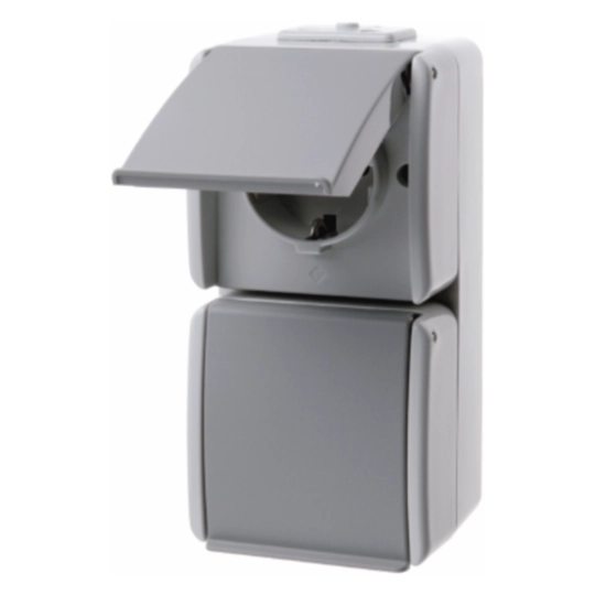 2fach-Steckdose SCHUKO mit Klappdeckel Aquatec IP44 lichtgrau/grau 477005