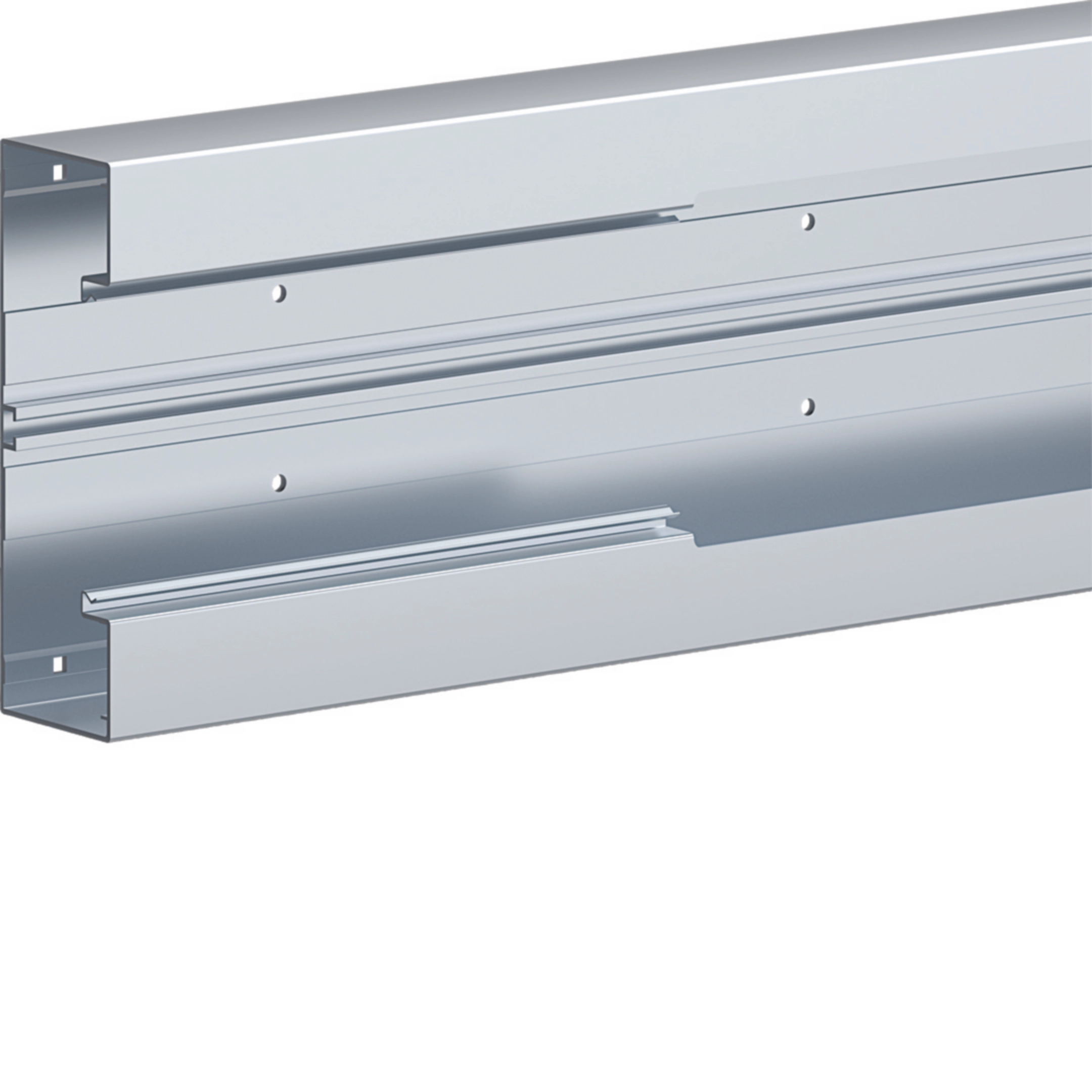 Brüstungskanalunterteil mit Oberteilbreite 120mm zur Aufnahme eines Kleinverteilers für Brüstungskanäle mit 12 Platzeinheiten.