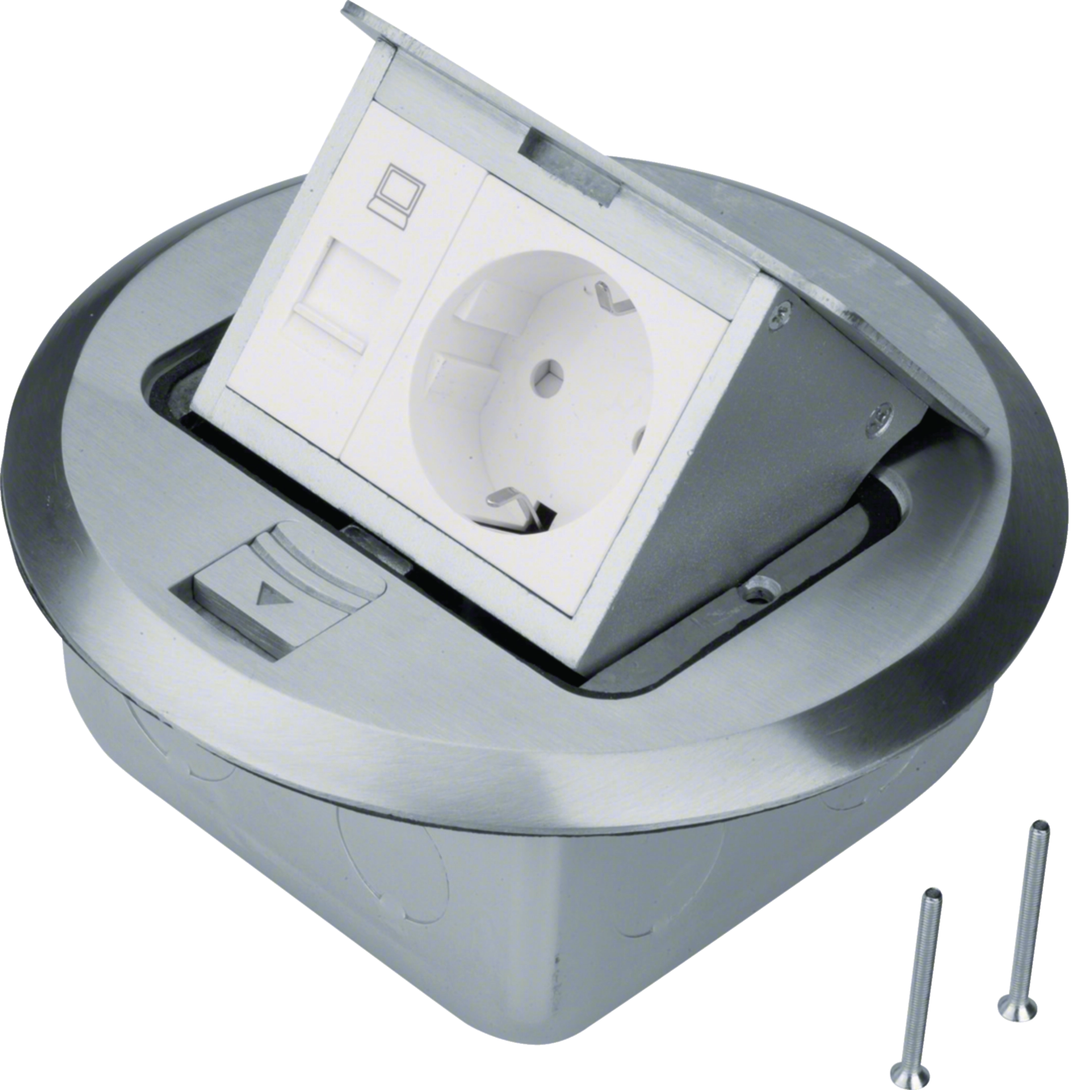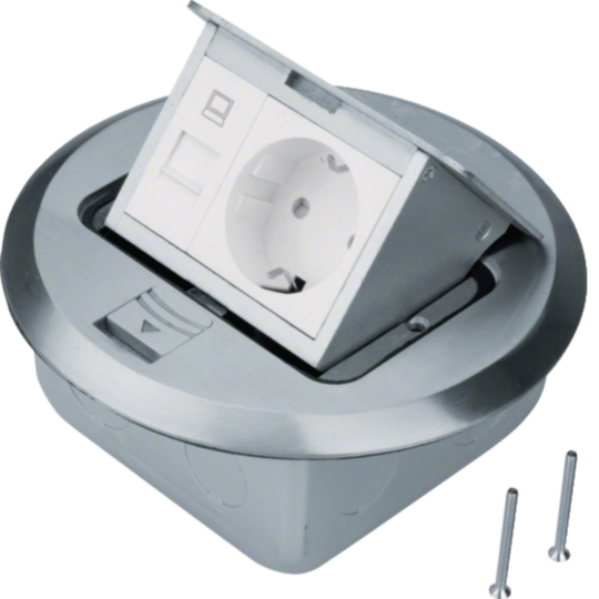 Bodensteckdose rund aus geschliff. Edelstahlguss Steckdose Rastec 45 u. RJ45