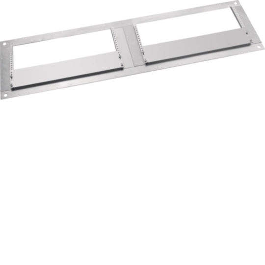 Schrankgerüst aus verzinktem Stahlblech, Deckblech und Rückwand aus feuerverzinktem Stahlblech. Mit waagrechter Abfangschiene zur Tragschienen-Stabilisierung, Koppelplatten zur Tragschienenbefestigung, vorbereitet für univers N Innenausbausystem. Sammelschienendurchführung durch offene Seitenwände nebeneinander anflanschbar.