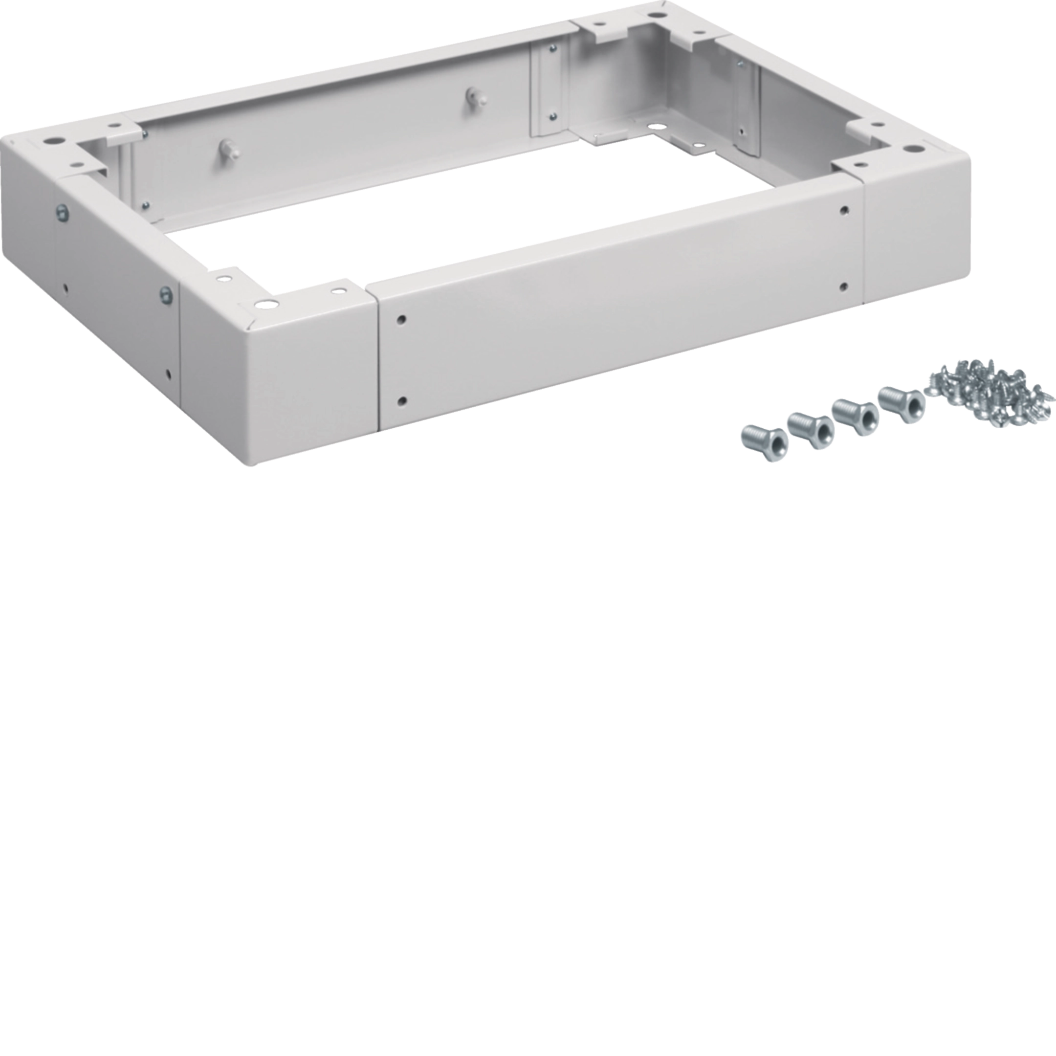 Sockelleisten zur Montage unter den passenden Anreihstandverteiler IP54. Mit allseitig abnehmbaren Blenden, oben und unten offen. Korpus aus pulverbeschichtetem, eingebranntem und 1,5 mm dickem Stahlblech.