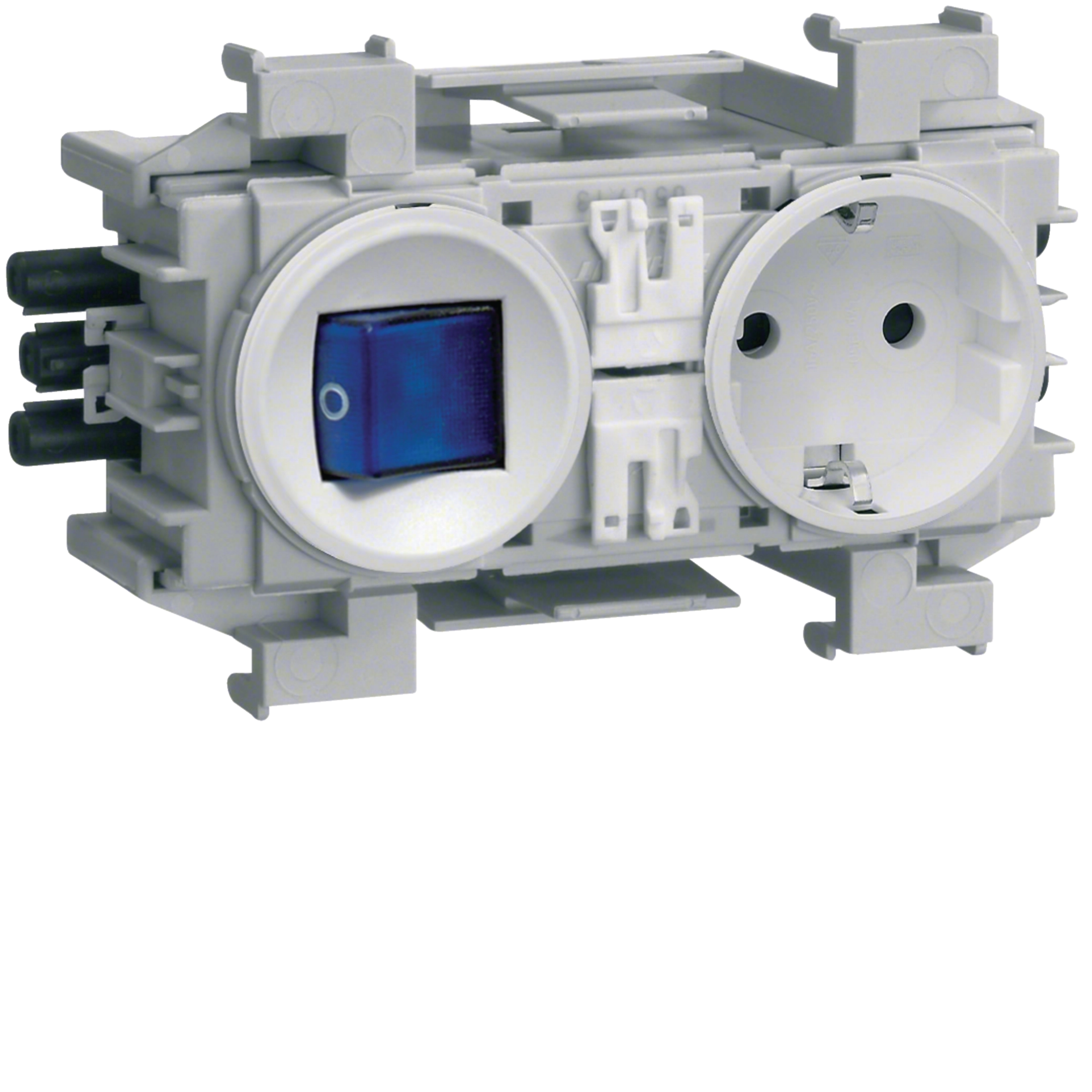 Vorbestückt mitSchutzkontaktsteckdose mit Schalter