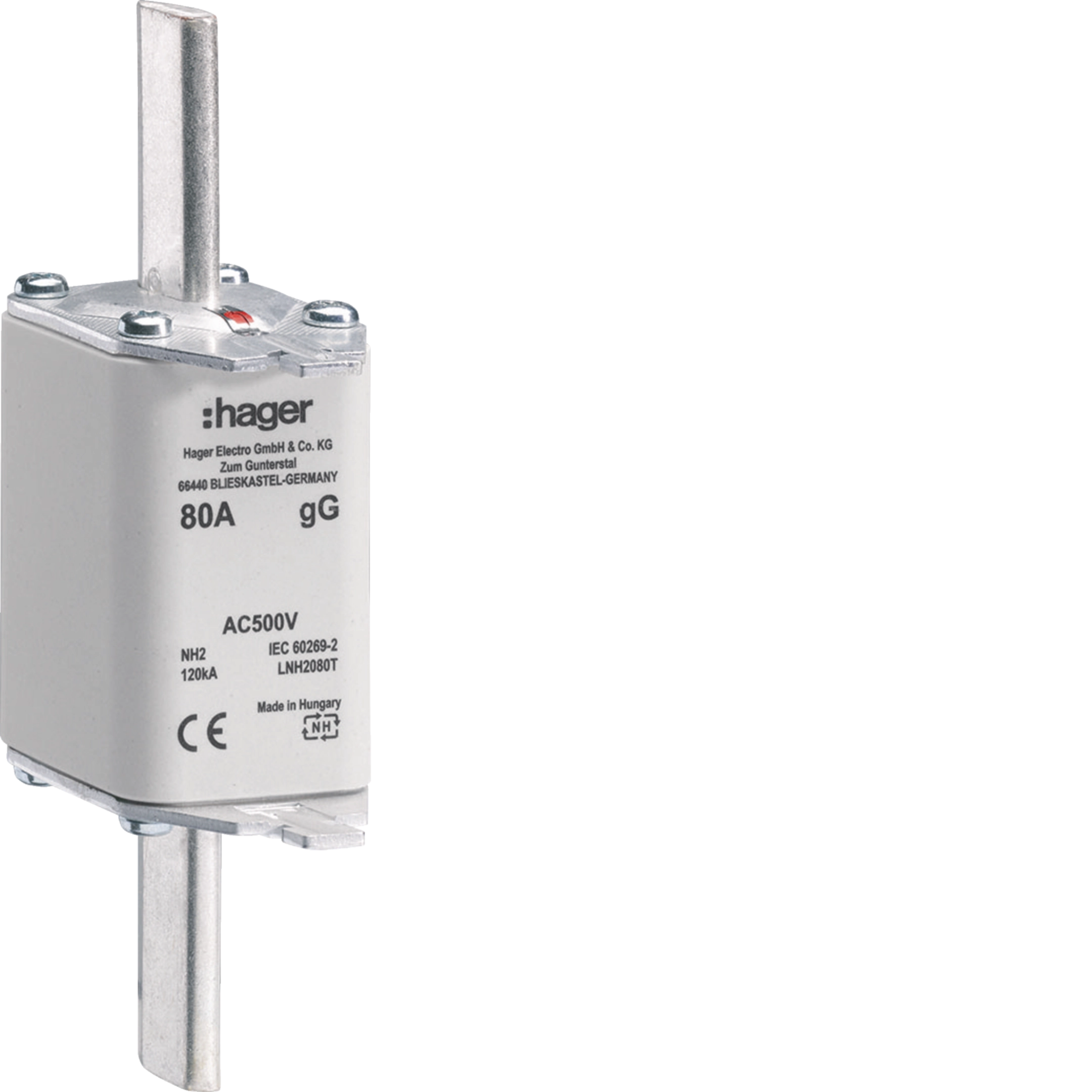 NH-Sicherungseinsatz NH2C gG 500V 80A Top-Melder Grifflasche spannungsführend