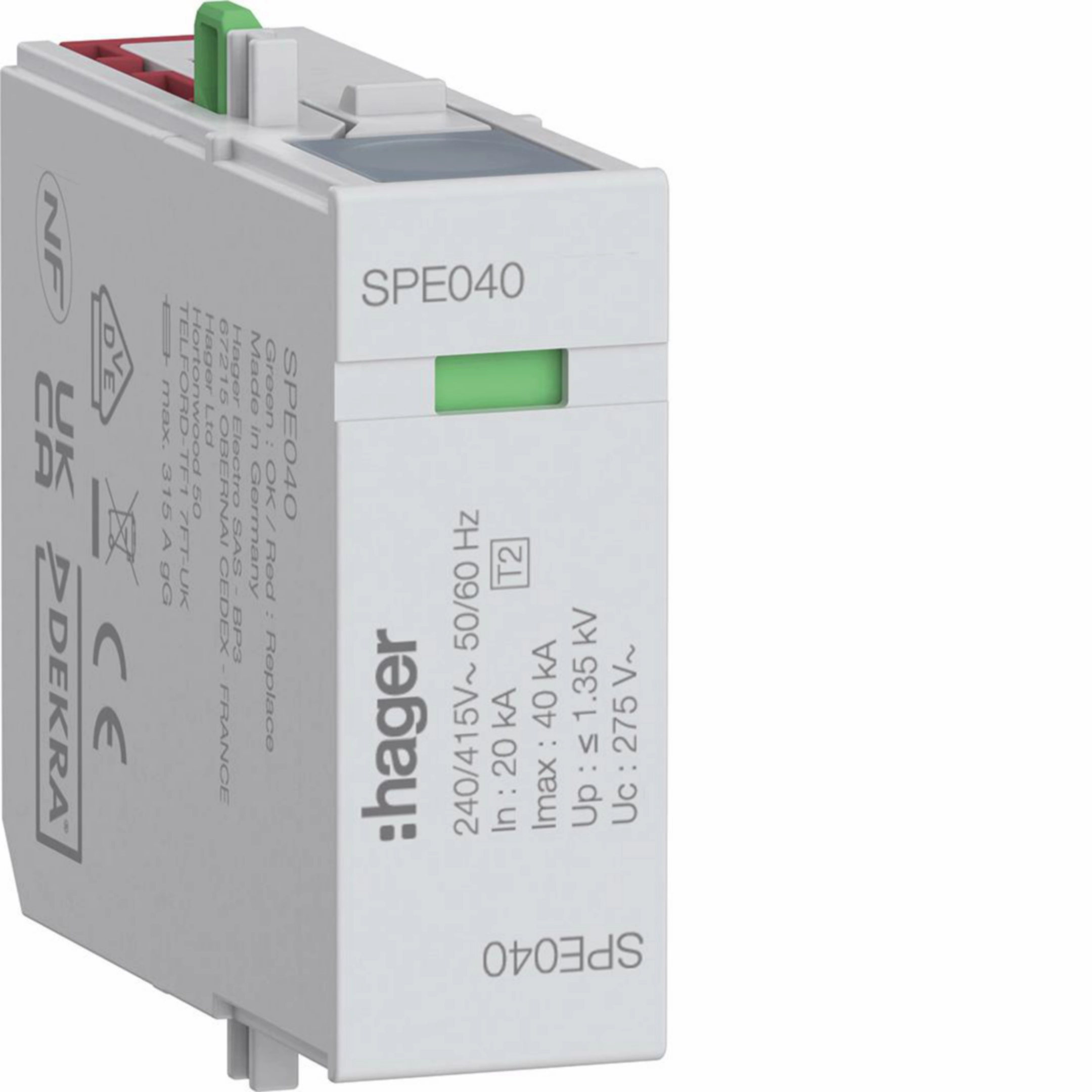 Steckmodul L-N Uc 275V In 20kA Imax 40kA Up 1,35kV SPE040
