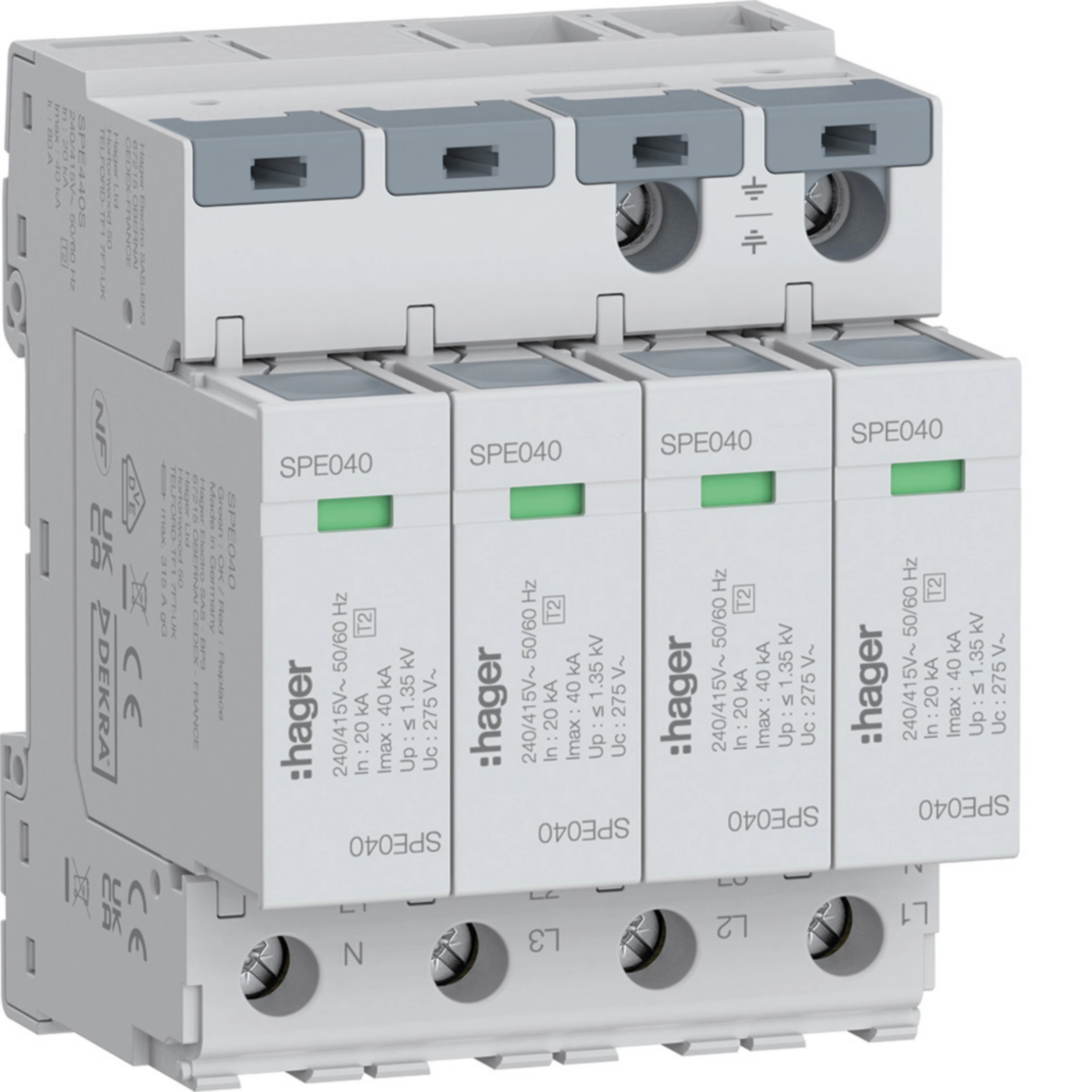 Überspannungsableiter 4P T2 TNS Uc 275V In 20kA Imax 40kA SPE440S