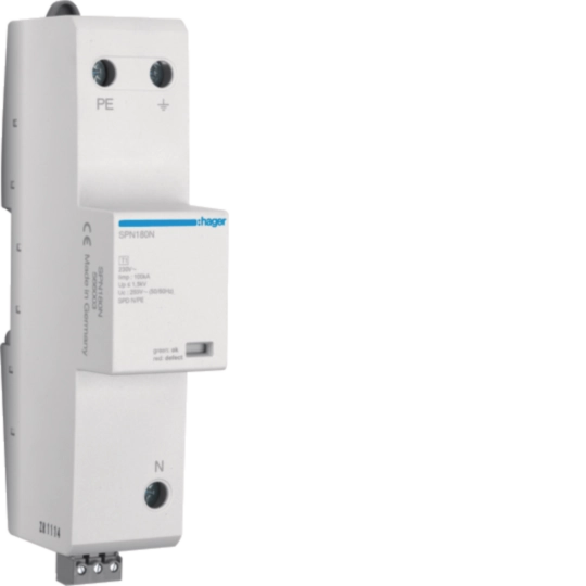 Kombi-Ableiter 1polig 100kA TT+TNS mit Ableitervorsicherung + Fernmeldekontakt SPN180N