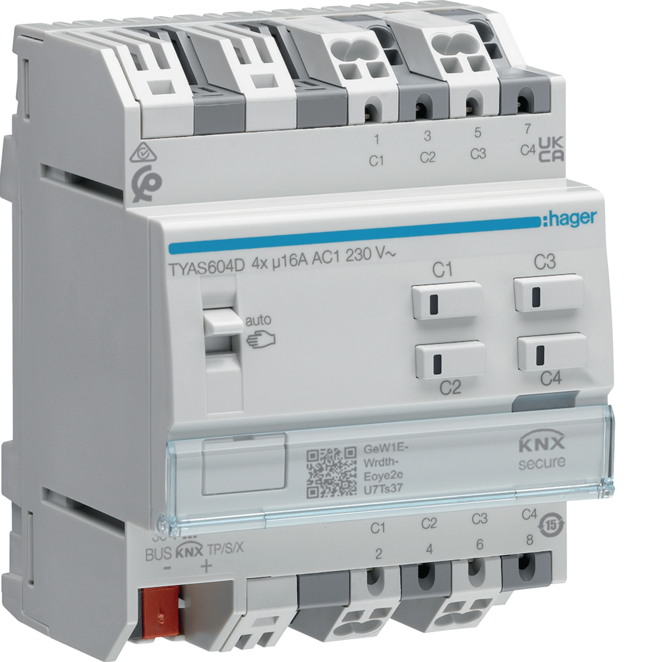 Schalt-/Jalousieaktor 4/2-fach KNX Secure, 16A, C-Last TYAS604D