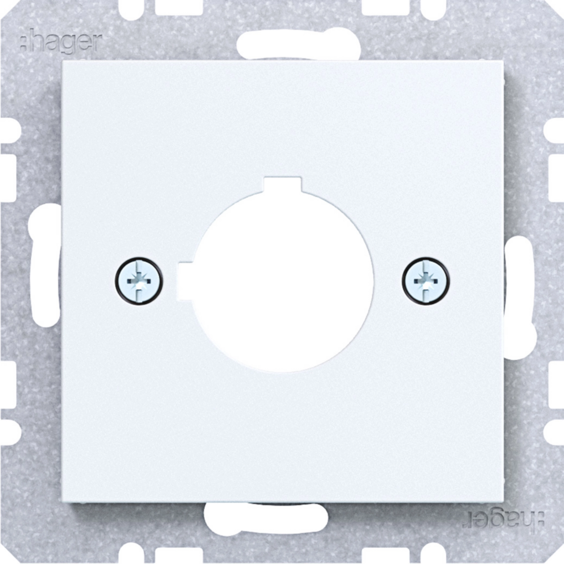Zentralplatte ohne Spreizkrallen mit Zentralstück und Ausschnitt zur Schraubbefestigung.