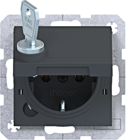 Steckdose SCHUKO m. Klappdeckel, arretierend, Schl., Steckkl., A.x/C.x, anthr mt WAS1115AT