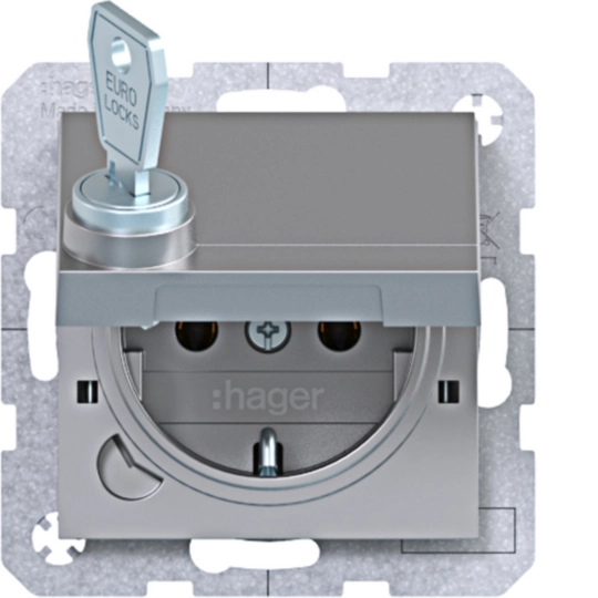 Steckd. SCHUKO m. Klappdeckel, arretierend, Schl., Steckkl.,A.x/C.x, titan mt la