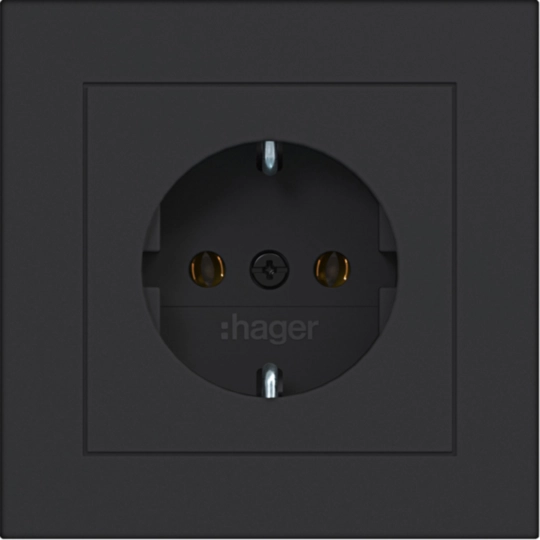 Steckdose SCHUKO mit Abdeckplatte, Steckklemmen, A.1, nachtschwarz matt